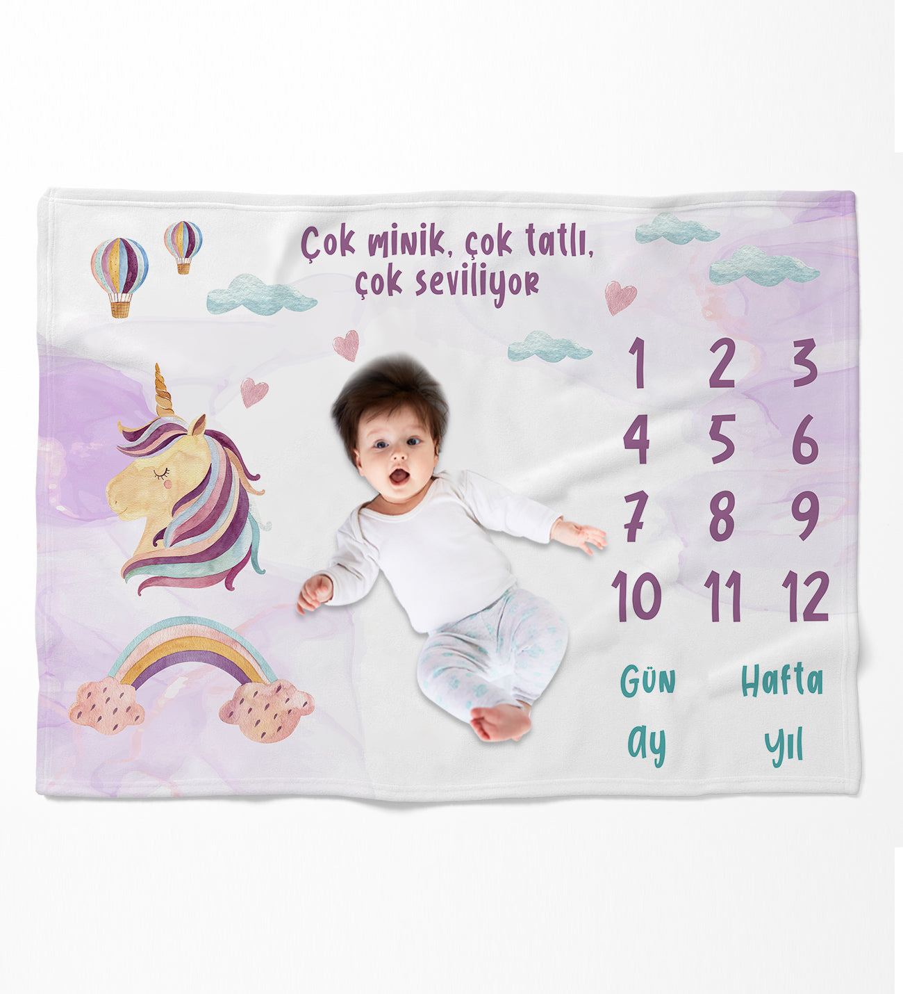 Milbay Unicorn ve Gökkuşağı Desenli Anı Örtüsü