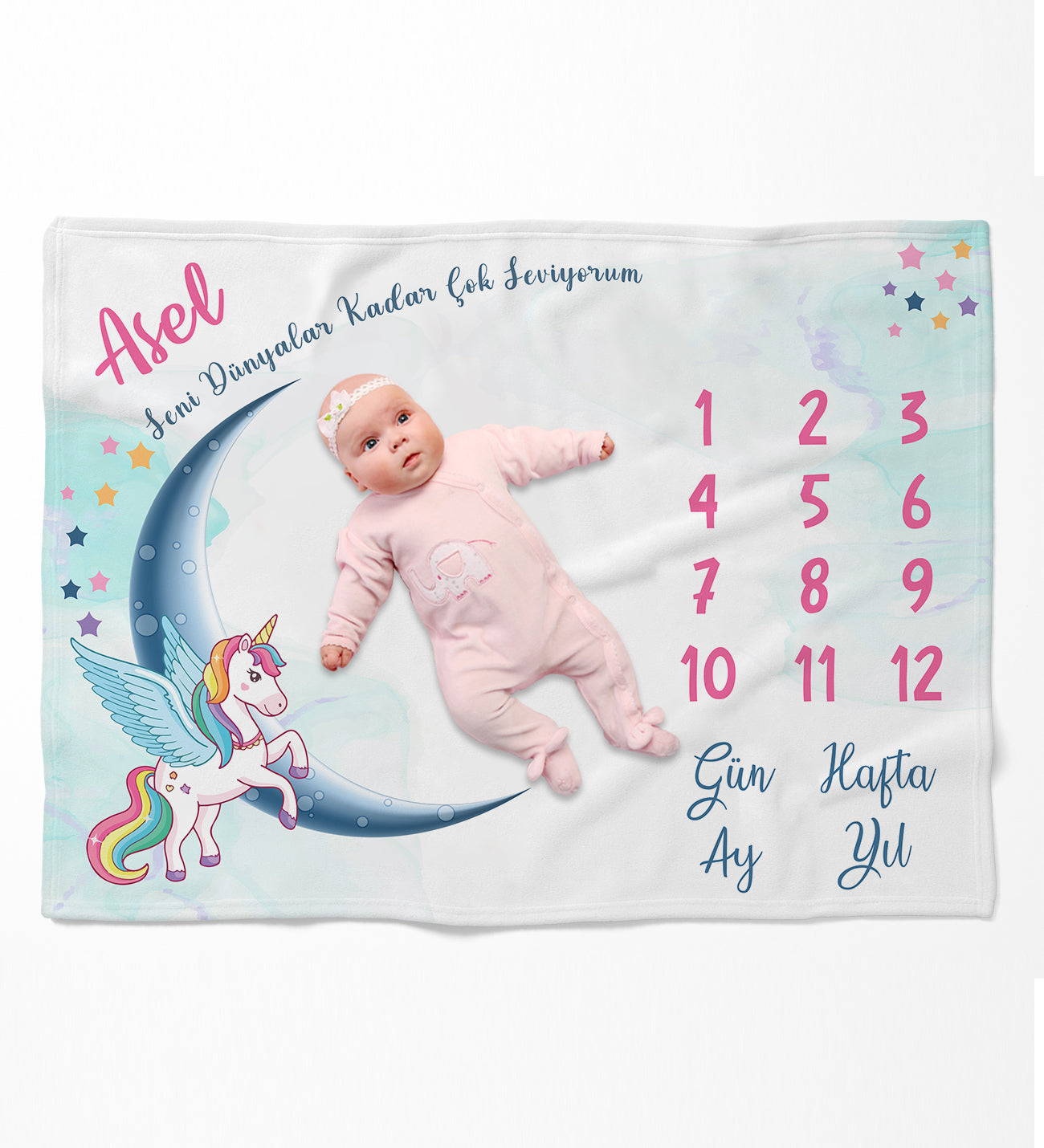 Milbay Unicornlu Ay Yıldızlı Desenli Anı Örtüsü