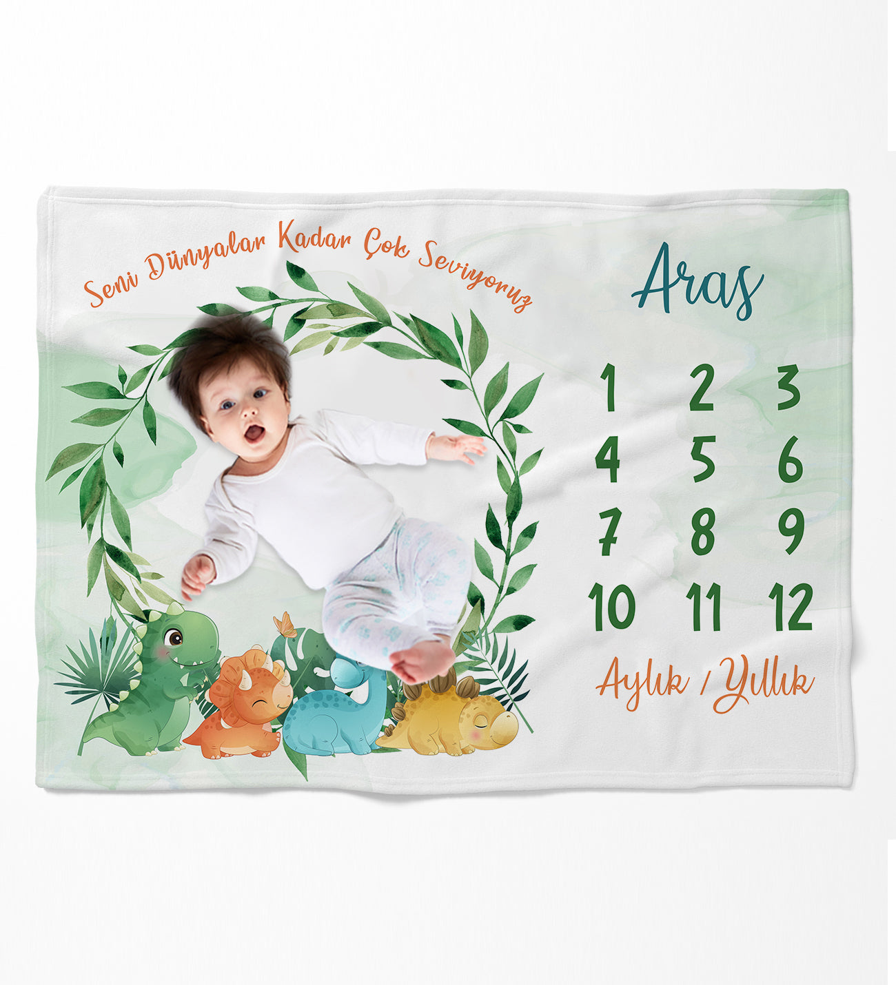 Milbay Dinozor ve Yaprak Desenli Anı Örtüsü