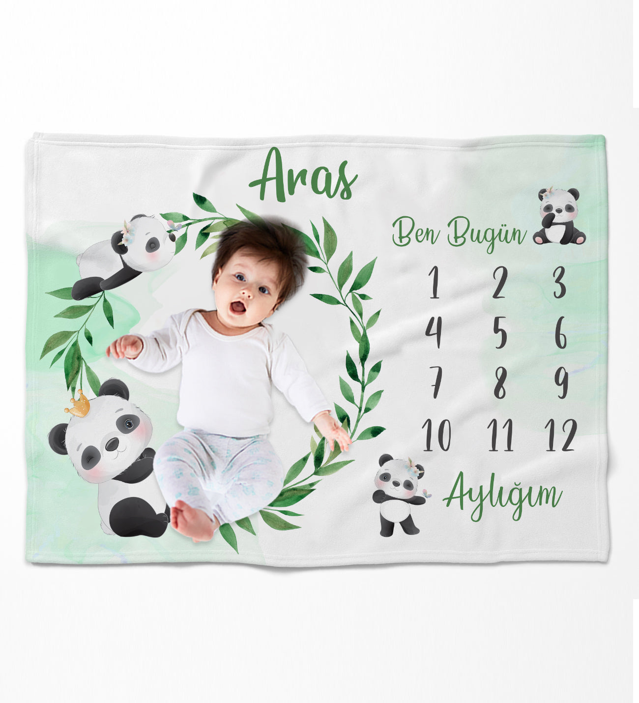 Milbay Panda Yeşil Çocuk Desenli Anı Örtüsü