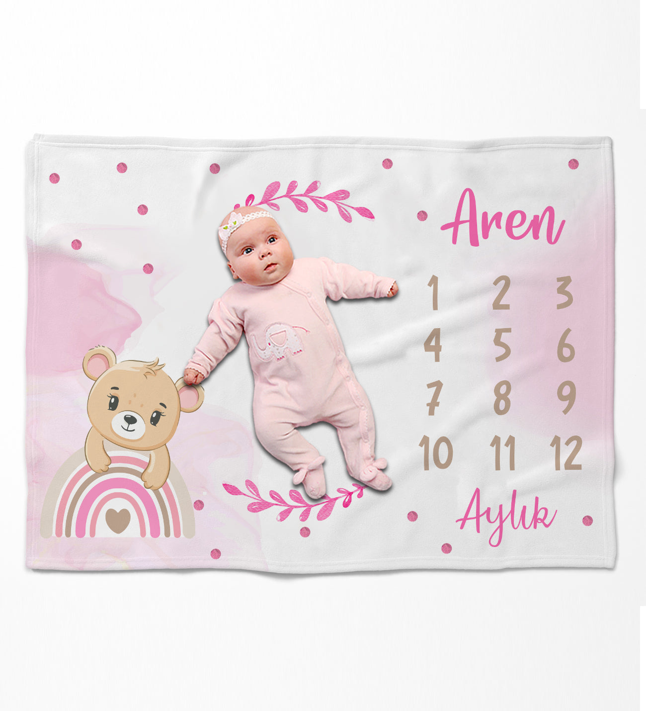 Milbay Ayıcıklı Gökkuşağı Desenli Anı Örtüsü