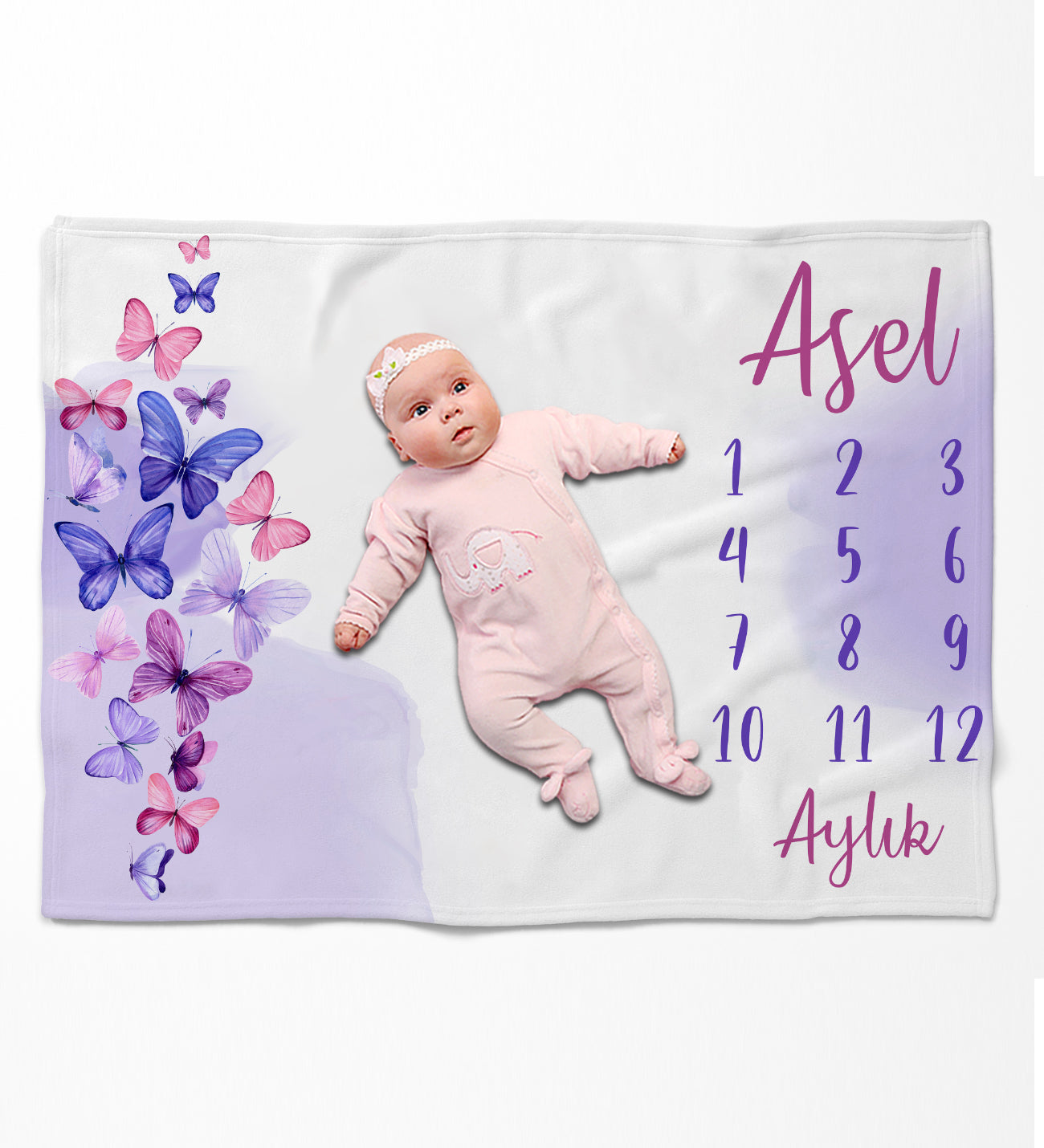 Milbay Kelebek Renkli Desenli Anı Örtüsü