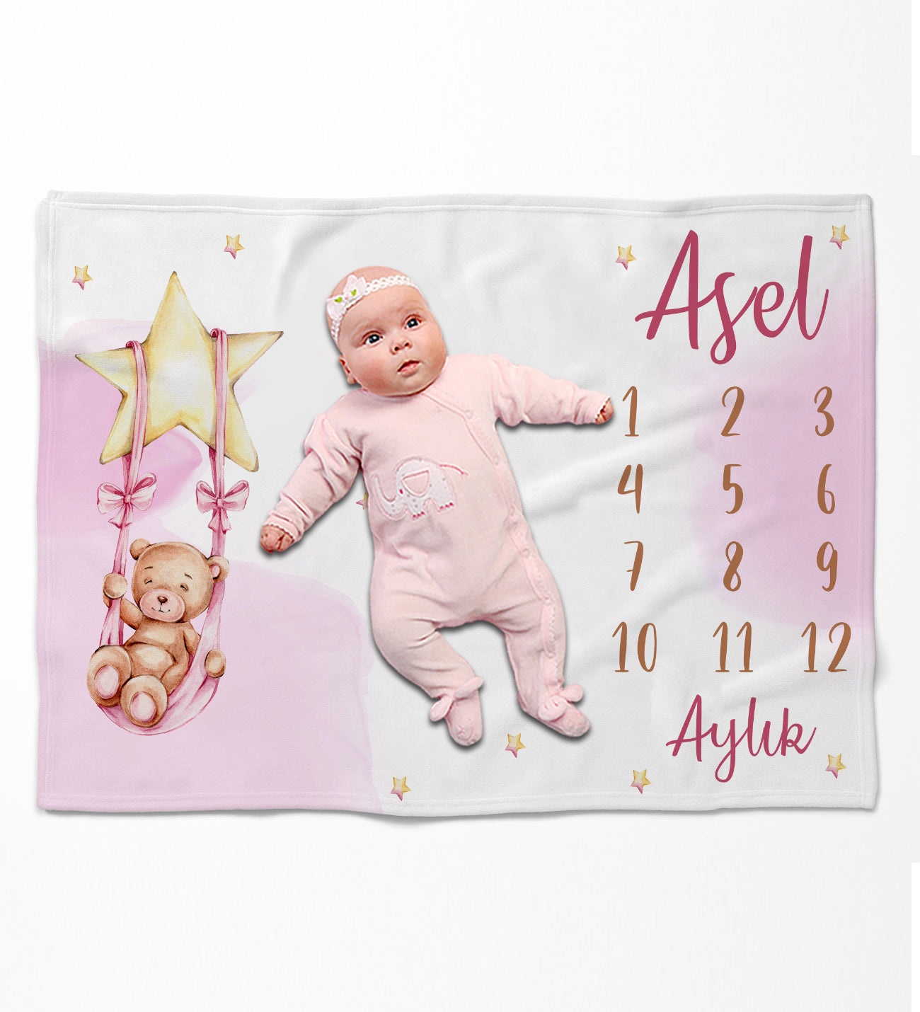Milbay Yıldızlı Ayıcık Desenli Anı Örtüsü