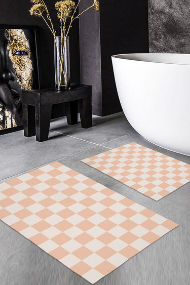 Milbay Pastel Kare Desenli Banyo Paspas Seti