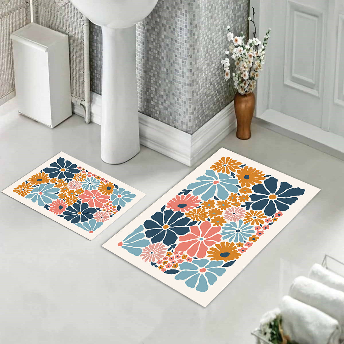Milbay Renkli Çiçek Bahçesi Desenli Banyo Paspas Seti ile evinizdeki dekorasyonu bir üst seviyeye taşıyın! 🏵🏡