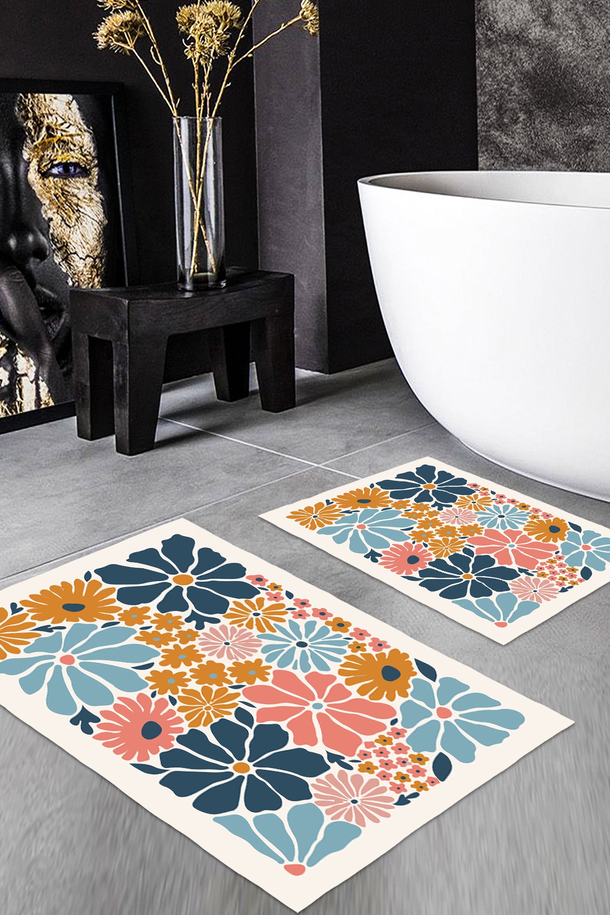 Milbay Renkli Çiçek Bahçesi Desenli Banyo Paspas Seti
