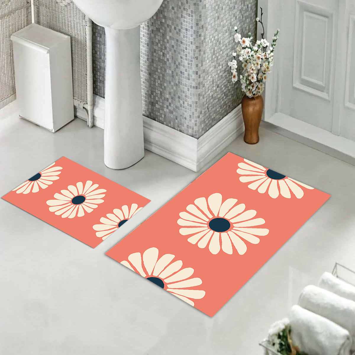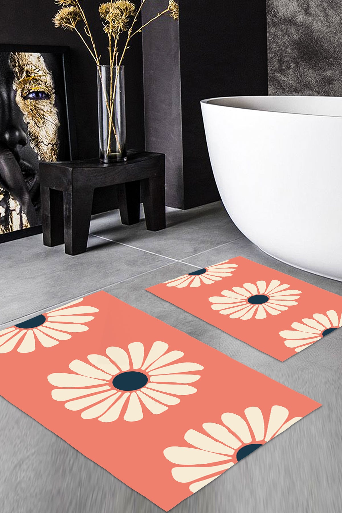Milbay Çiçekli Modern Desenli Banyo Paspas Seti
