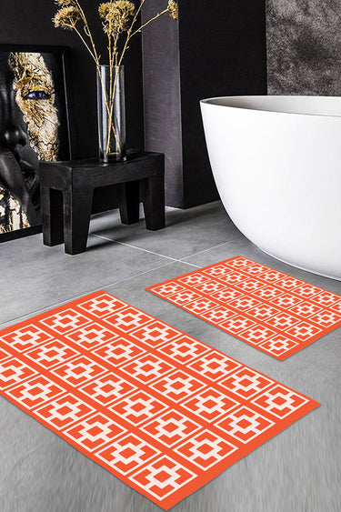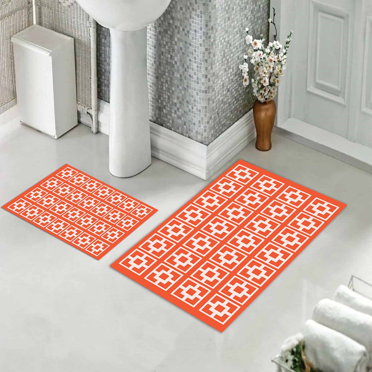 Milbay Geometrik Turuncu Desenli Banyo Paspas Seti