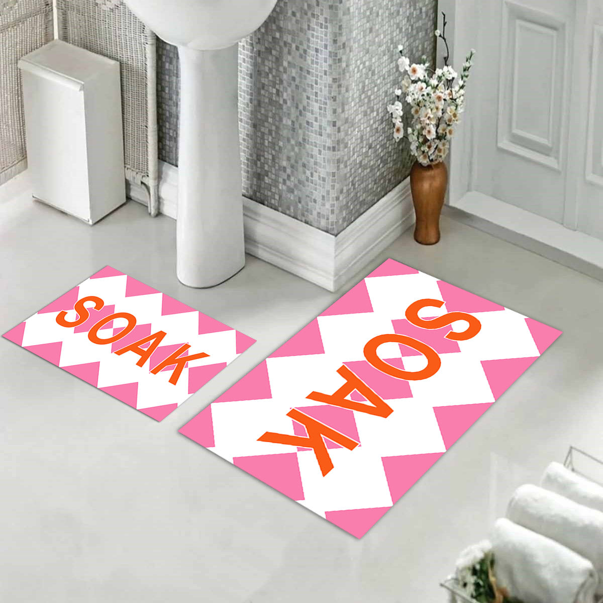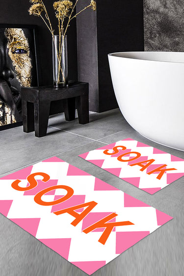 Milbay Pembe Geometrik Desenli Banyo Paspas Seti