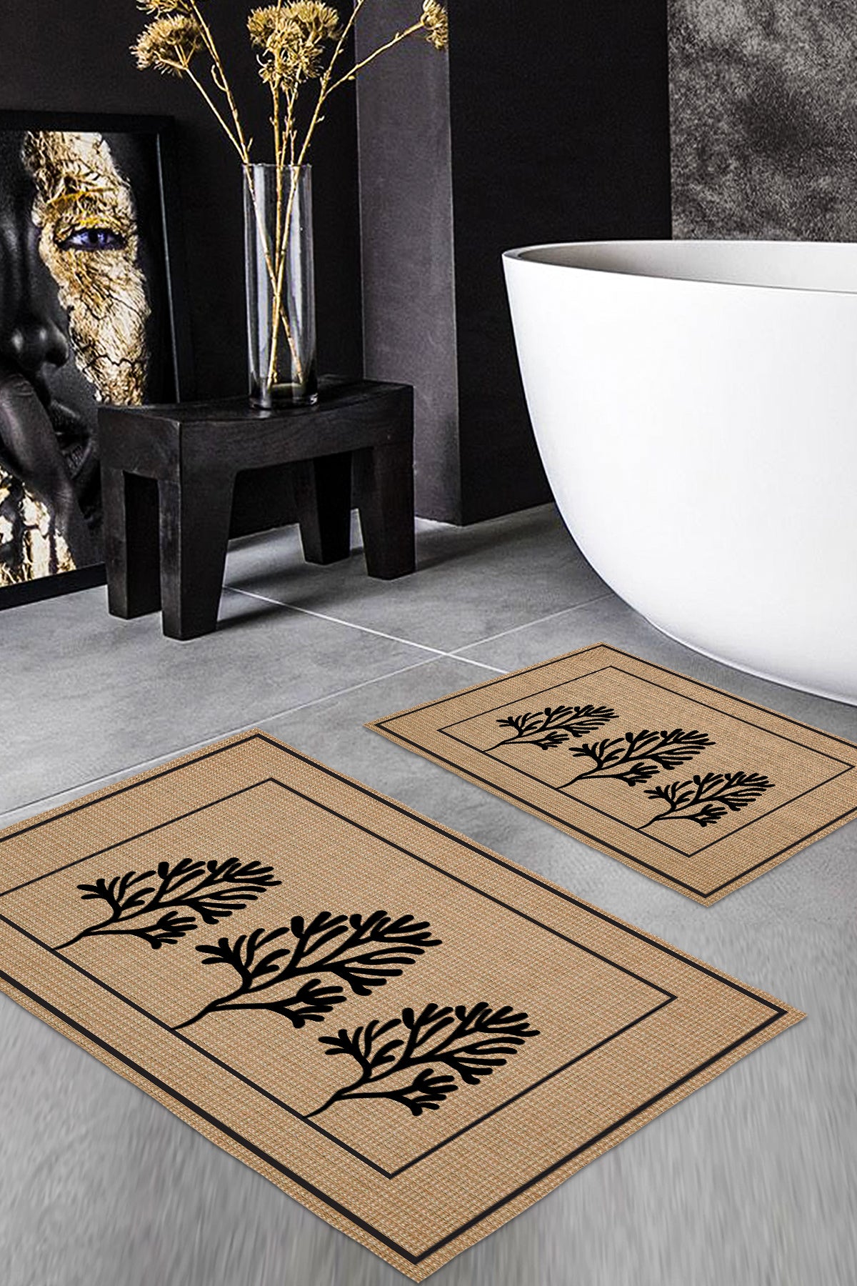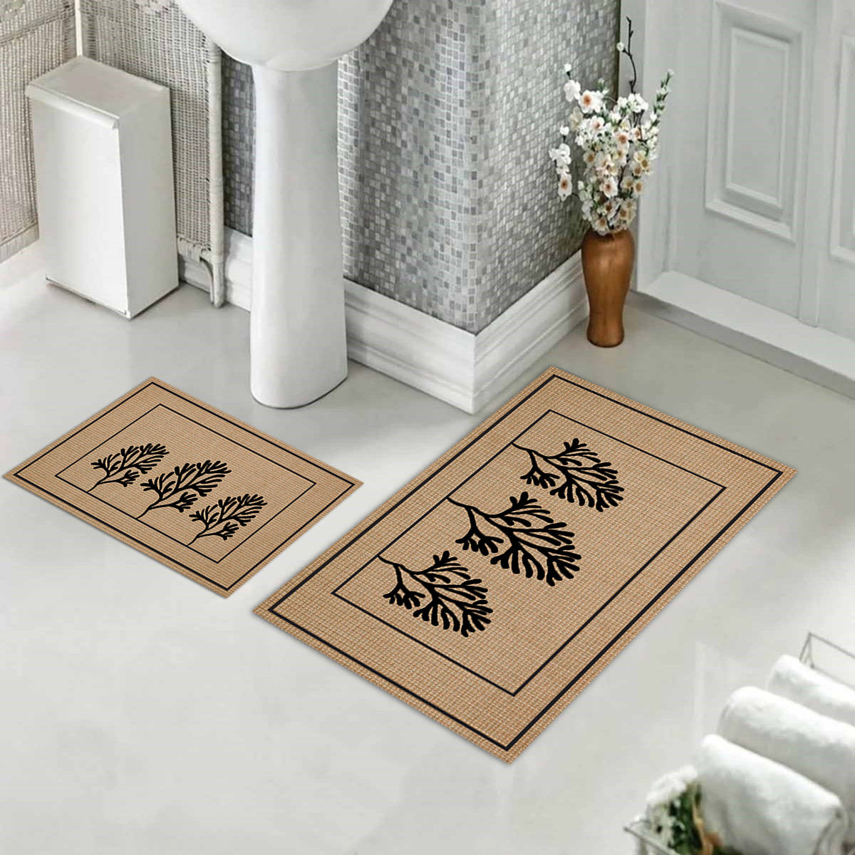Milbay Doğal Yaprak Desenli Banyo Paspas Seti