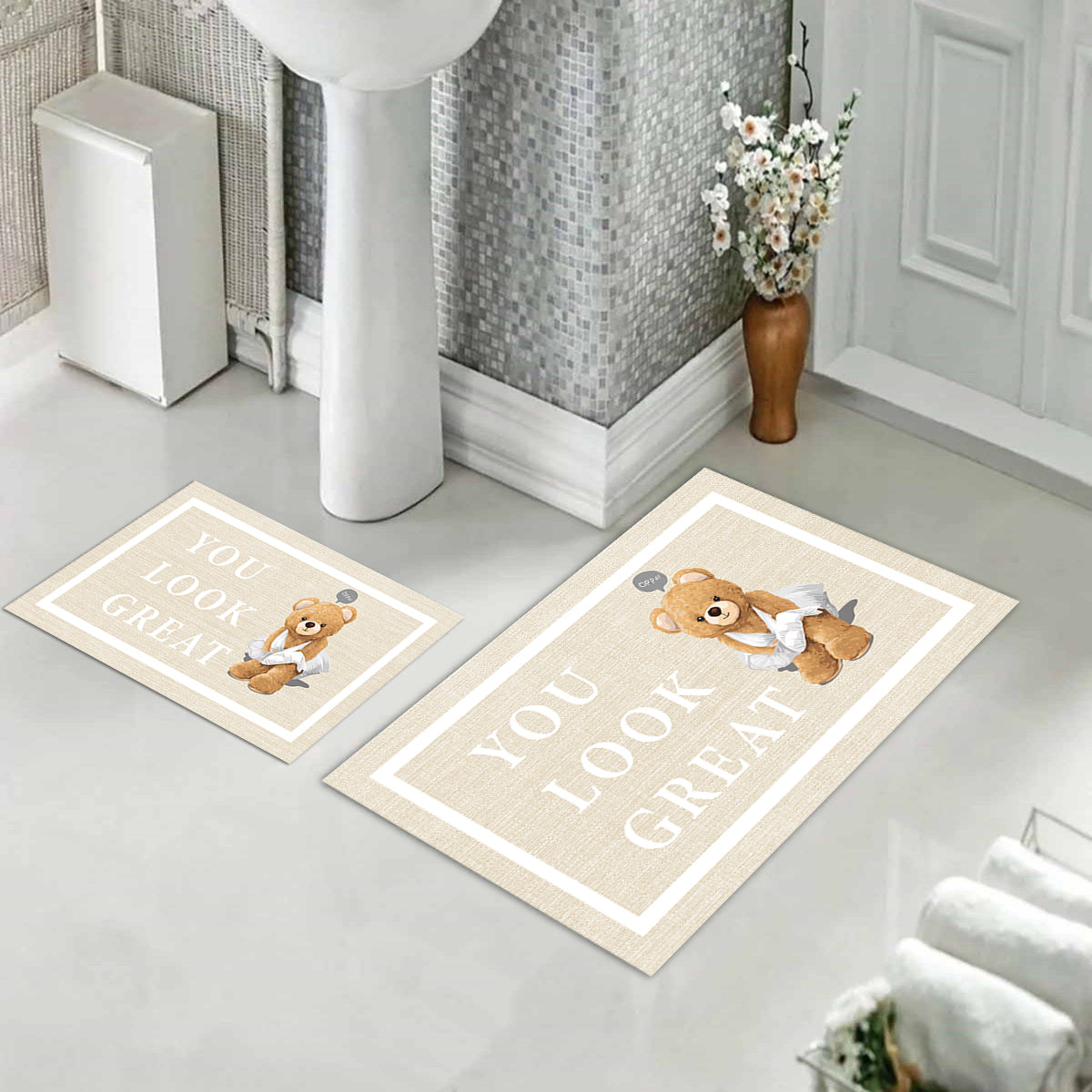 🏡💓 Milbay Ayıcık Motifli Desenli Banyo Paspas Seti evinize en sevimli dokunuşları yapacak! 🧸 İster çocuk odasında, ister salonunuzda kullanabileceğiniz bu bambu halı, kişisel tasarımı ile göz dolduruyor. Dijital baskı tekniğiyle hazırlanan bu paspas seti, adeta bir sanat eserini andırıyor. Dahası, hem toptan hem de perakende satışa sunuyoruz — ideal bir Shopfiy ev dekorasyon parçası! 🎨 Ev tekstili koleksiyonunuza zarif bir dokunuş yapmak isteyenler için bu çocuk halısı tam bir gözde. 🥇