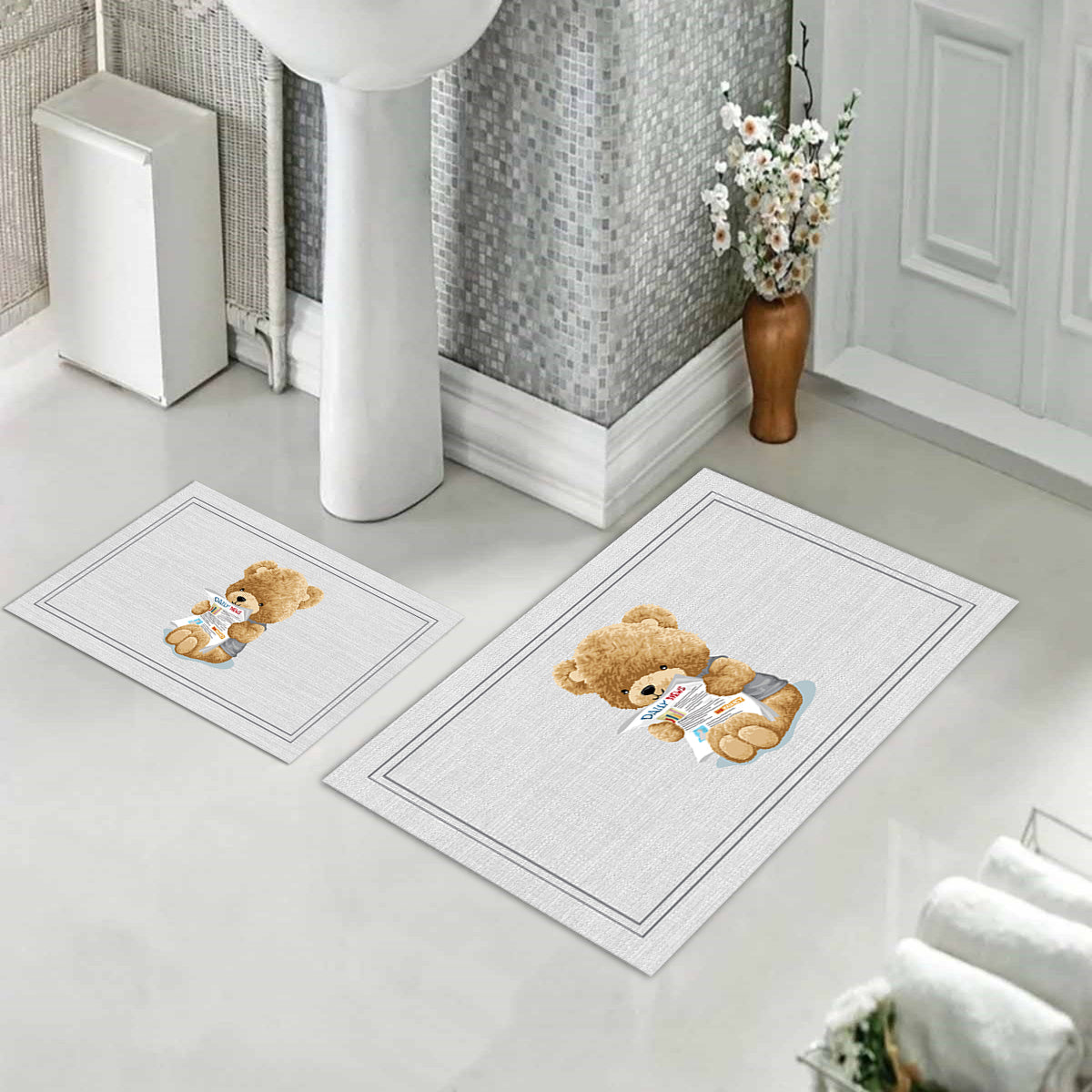 Milbay Neşeli Ayıcık Desenli Banyo Paspas Seti