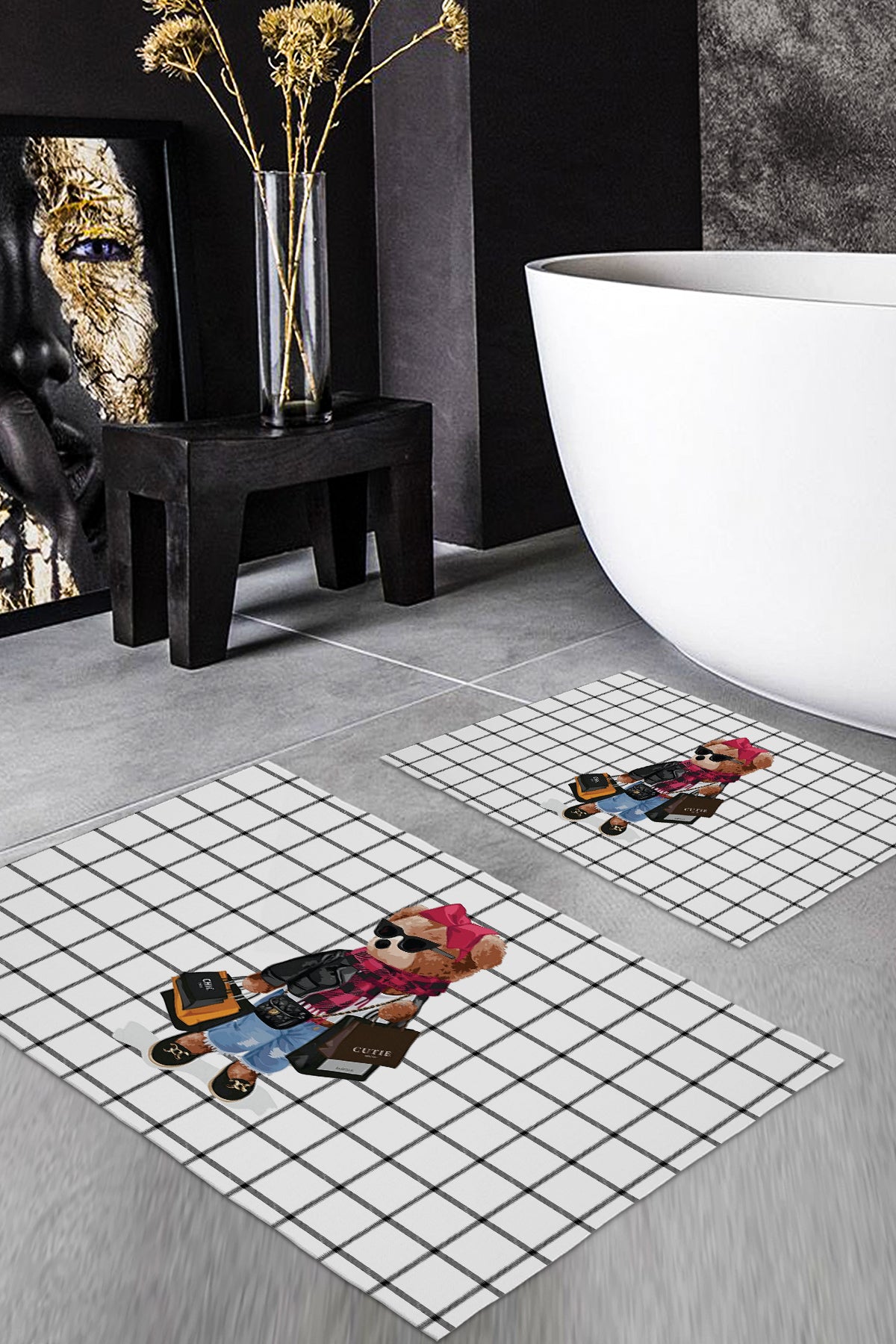 Milbay Trendy Ayıcık Desenli Banyo Paspas Seti
