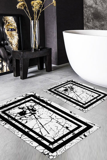 Milbay Mermer Efektli Desenli Banyo Paspas Seti