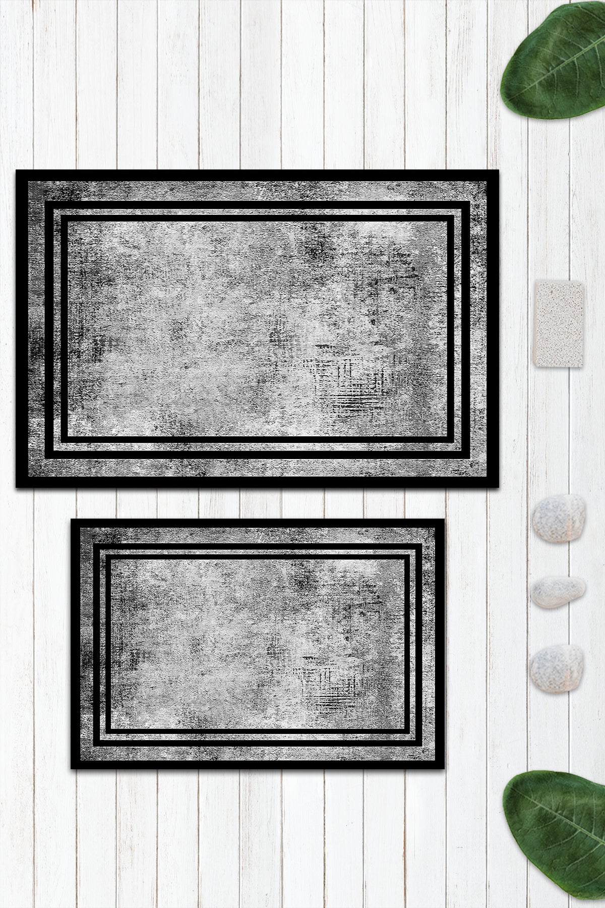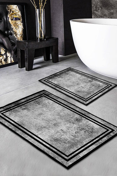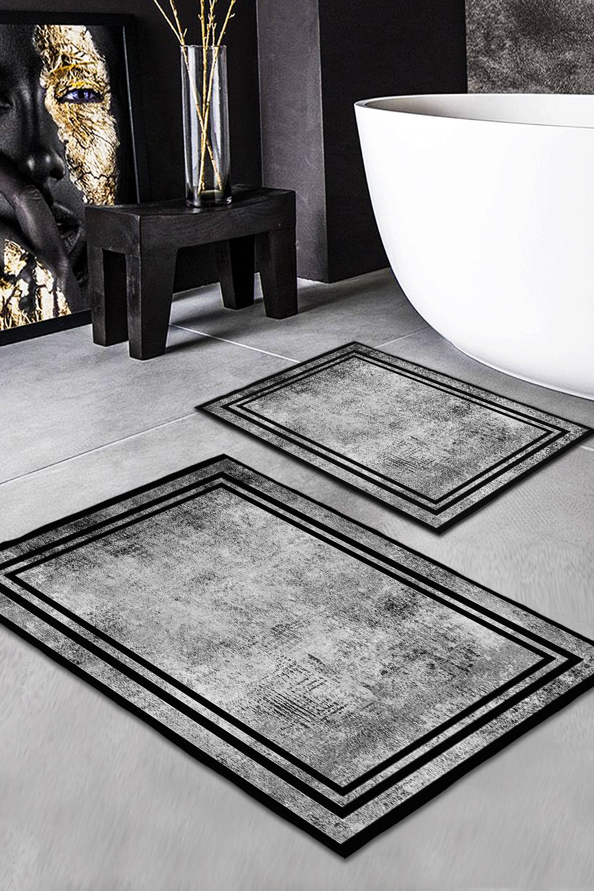Milbay Modern Gri Çizgili Desenli Banyo Paspas Seti