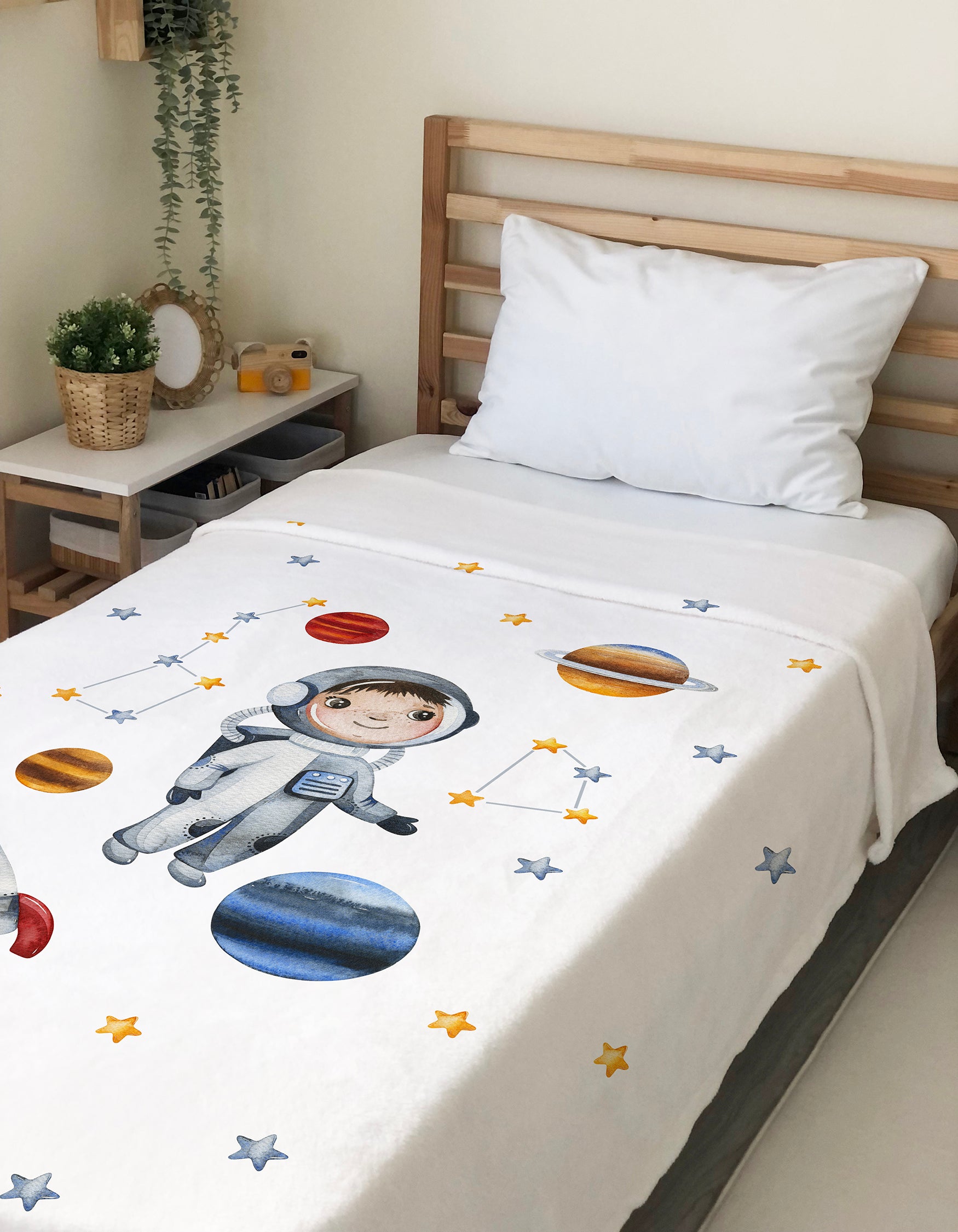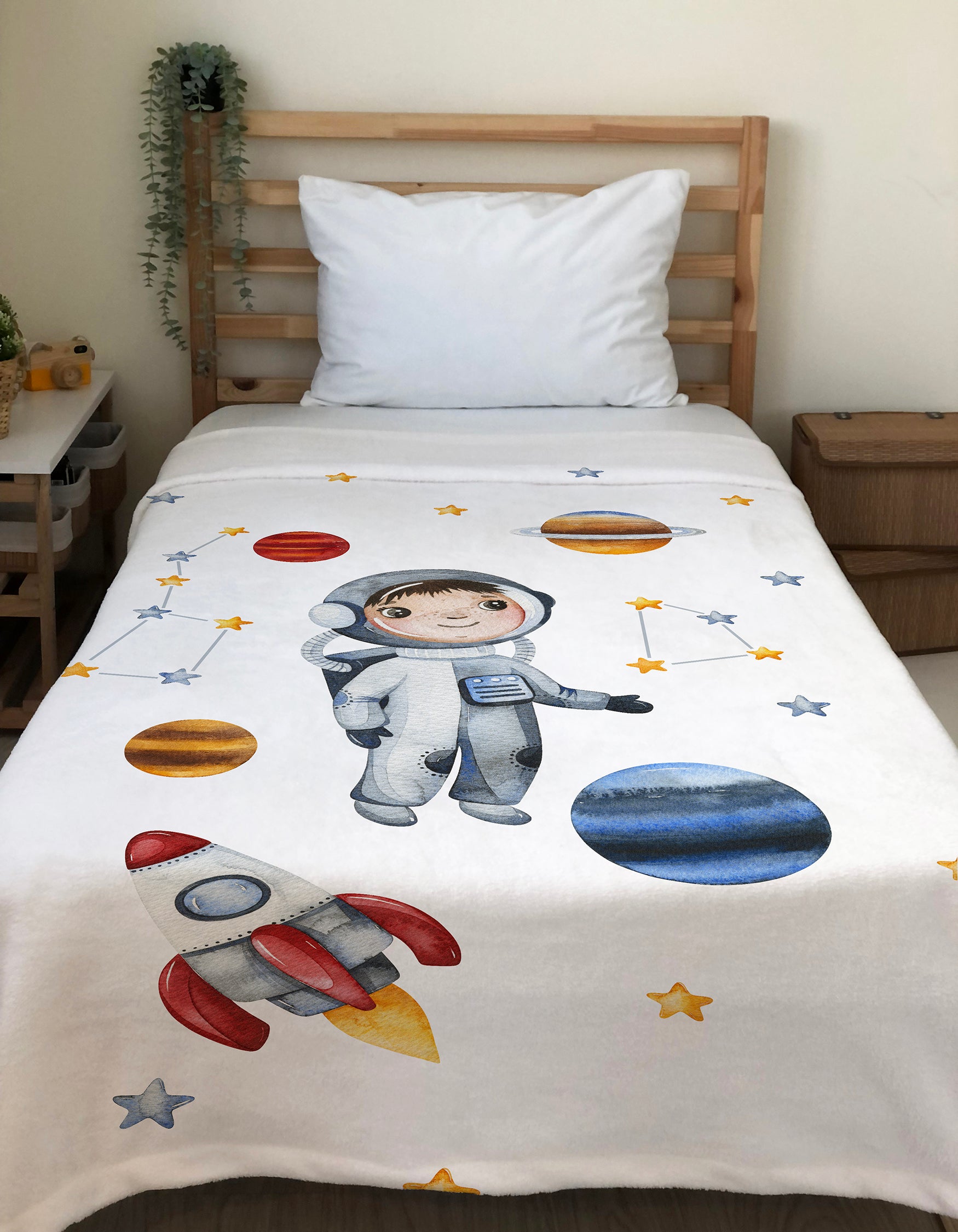 Milbay Uzay Keşif Desenli Battaniye, çocuklarınızın rüyalarını süsler! 🚀🌙 Çocuk odası dekorasyonlarında tarz sahibi olduğunuzu gösterir. 🌟🌈 Bu ürünle, çocuklarınıza ev içi maceralarına eşlik edebilirsiniz. 🎈👧👦