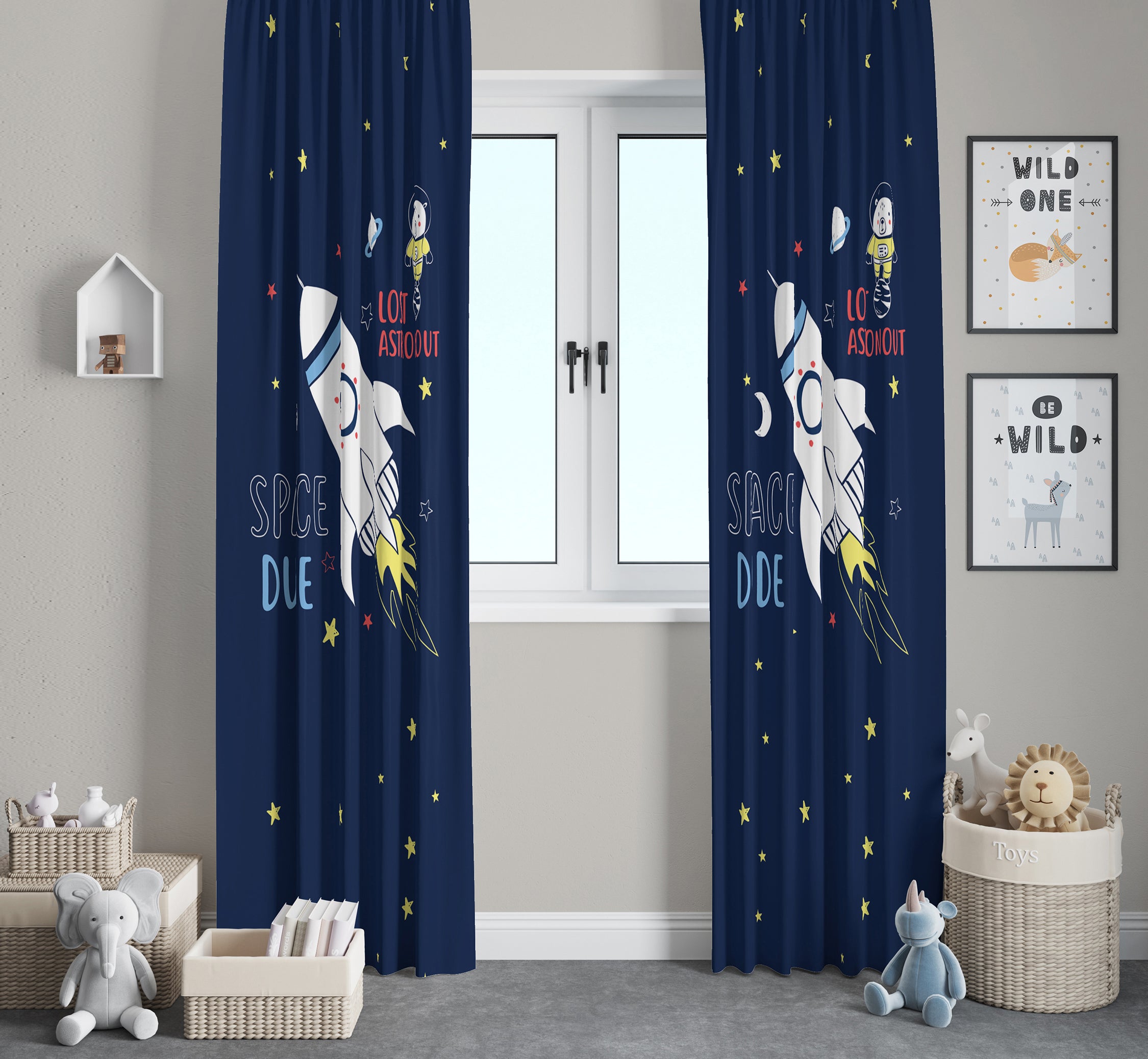 Milbay Uzay Macerası Desenli Fon Perde, Çocuk Fon Perdesi, Ev Dekorasyonu, Çocuk Odası Dekorasyonu için mükemmel seçim! 🌟🚀🏠