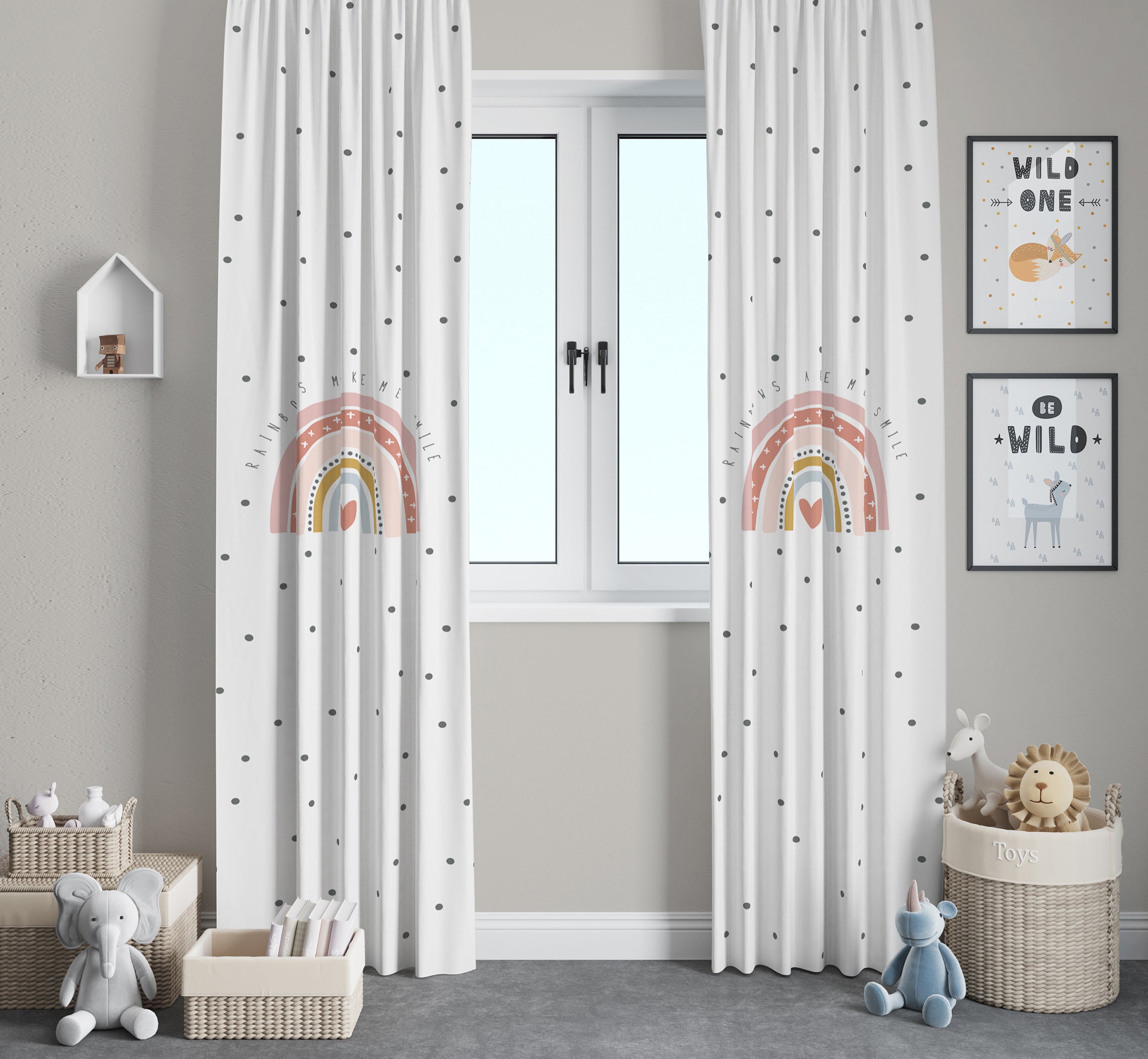 Dijital baskı merkezi olarak, sadık müşterilerimize kaliteli hizmet sunmak için çalışıyoruz. Gökkuşağı desenli perdemiz, çocuklarınızın odasını neşe ve renk dolu bir dünyaya çevirecek. 💖🌼
