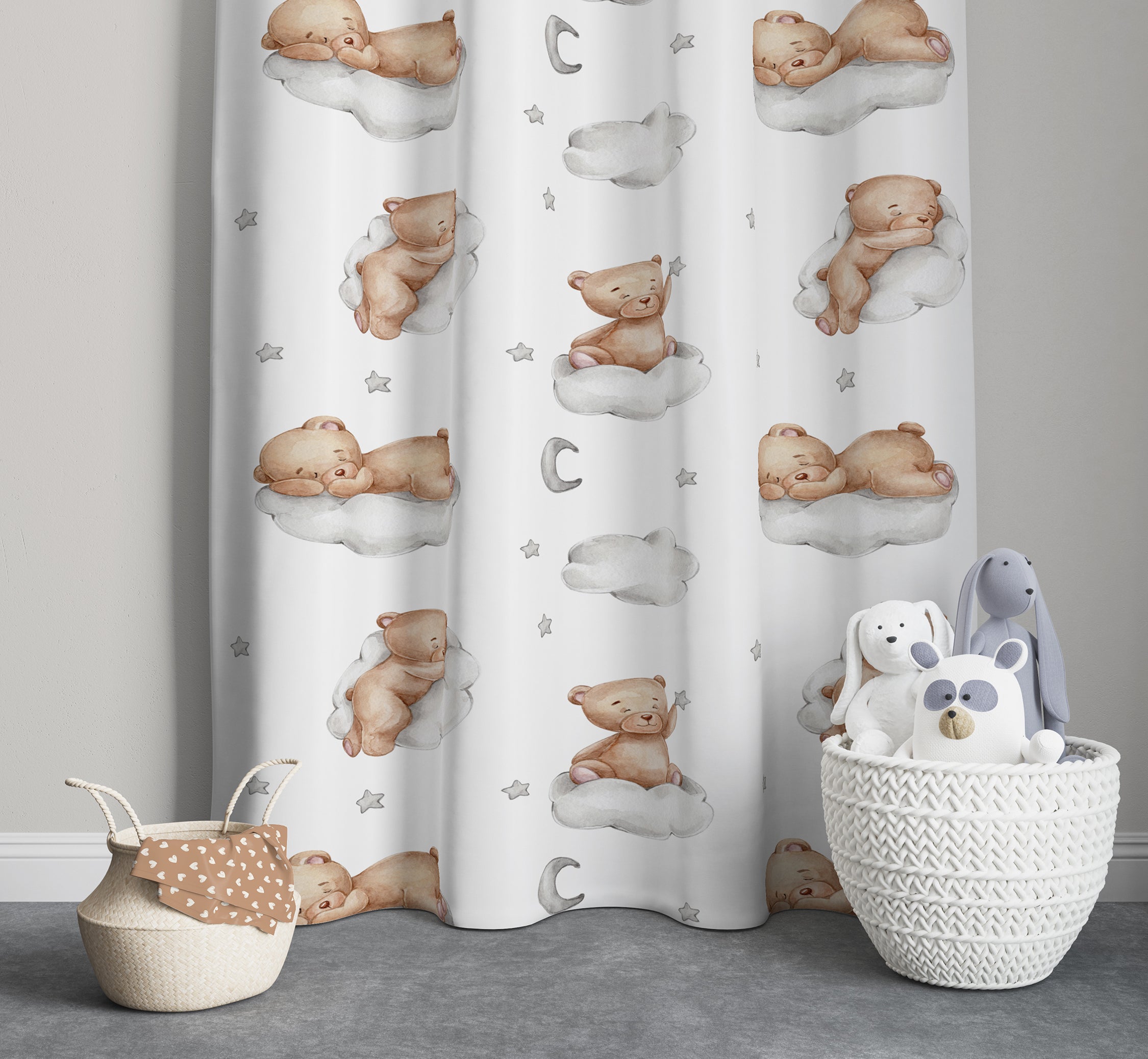 Milbay Ayıcıklı Bulut Desenli Fon Perde
