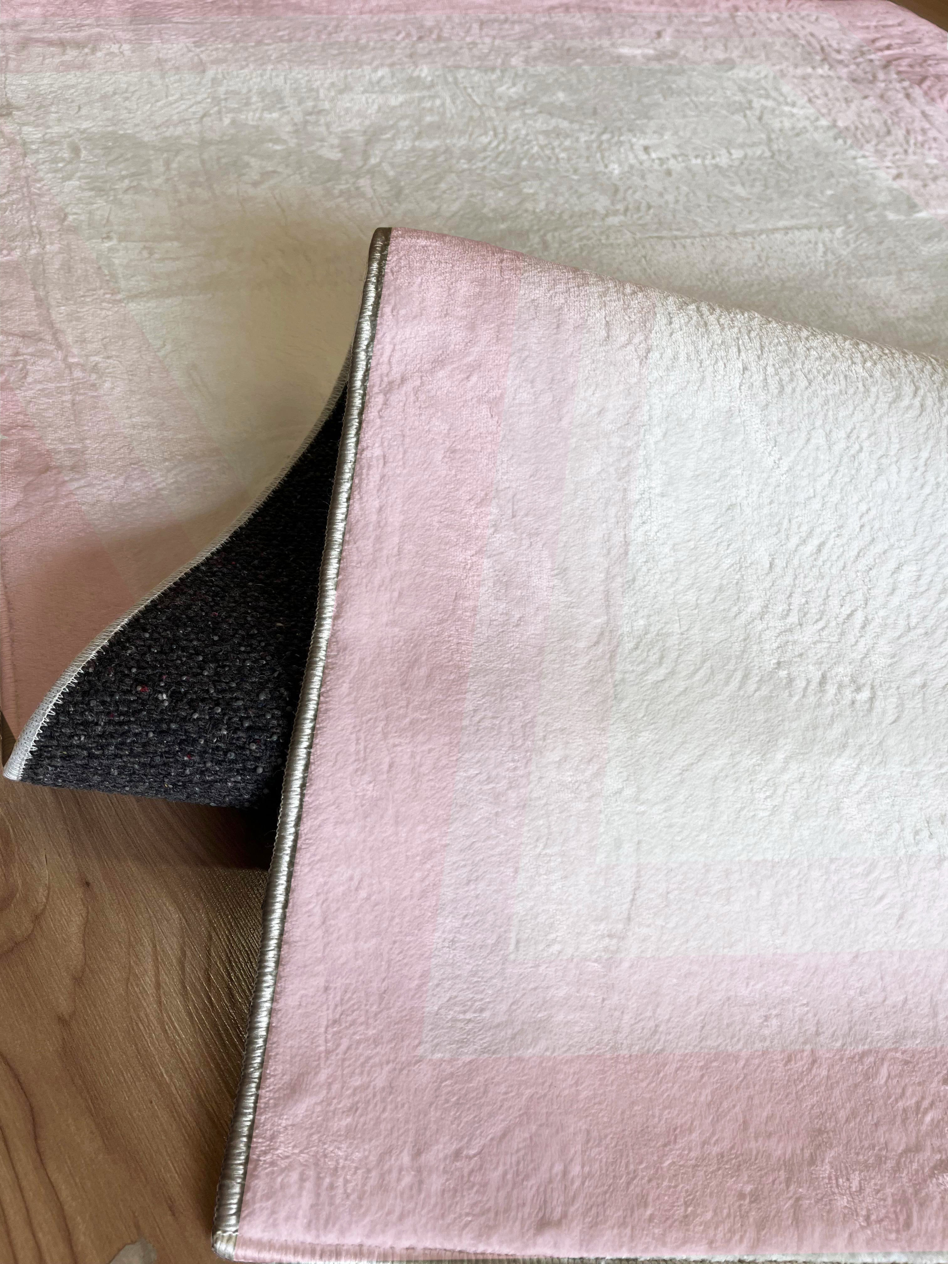 Milbay Pembe Pastel Çerçeve Desenli Çocuk Halısı