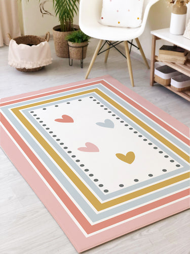 Milbay Renkli Kalpler Desenli Çocuk Halısı
