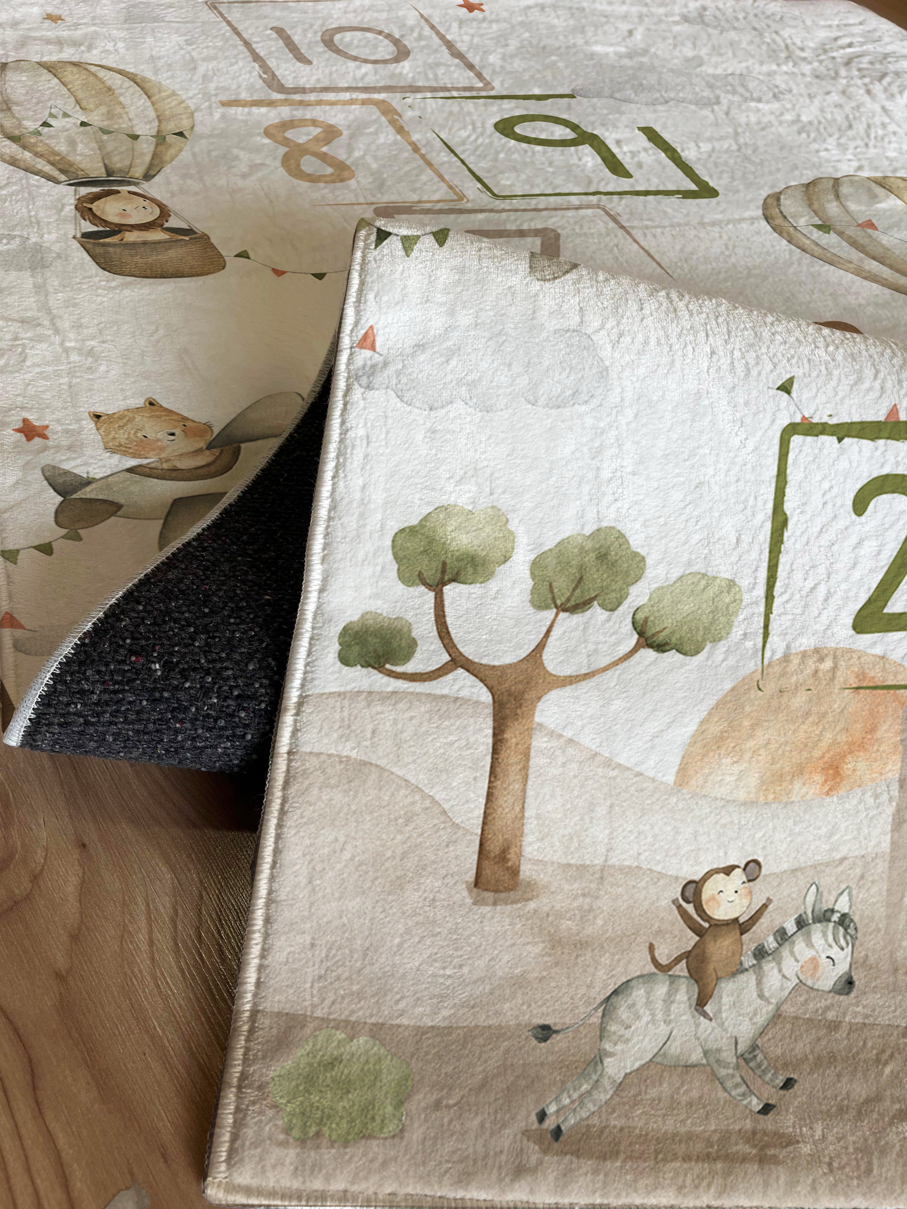 🎈Çocuklar için özel tasarımımız olan Milbay Eğlenceli Safari Desenli Çocuk Halısı, ev dekorasyonunda canlılığı ve eğlenceyi bir arada sunuyor. 🌈 Shopify Halı koleksiyonumuzda yer alan bu özel halı, dijital baskı teknolojisi ile üretilmiştir. 🪧 Hem kalabalık çocuk kalabalıklarında hem de tek başına oynarken, toptan baskı teknolojisi sayesinde her kullanımda ilk günkü gibi kalır. 🎪 Kaymaz özelliği güvende oyun oynanması için tasarlanmıştır.