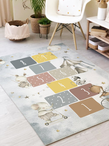Milbay Hayvanlar ve Rakamlar Desenli Çocuk Halısı