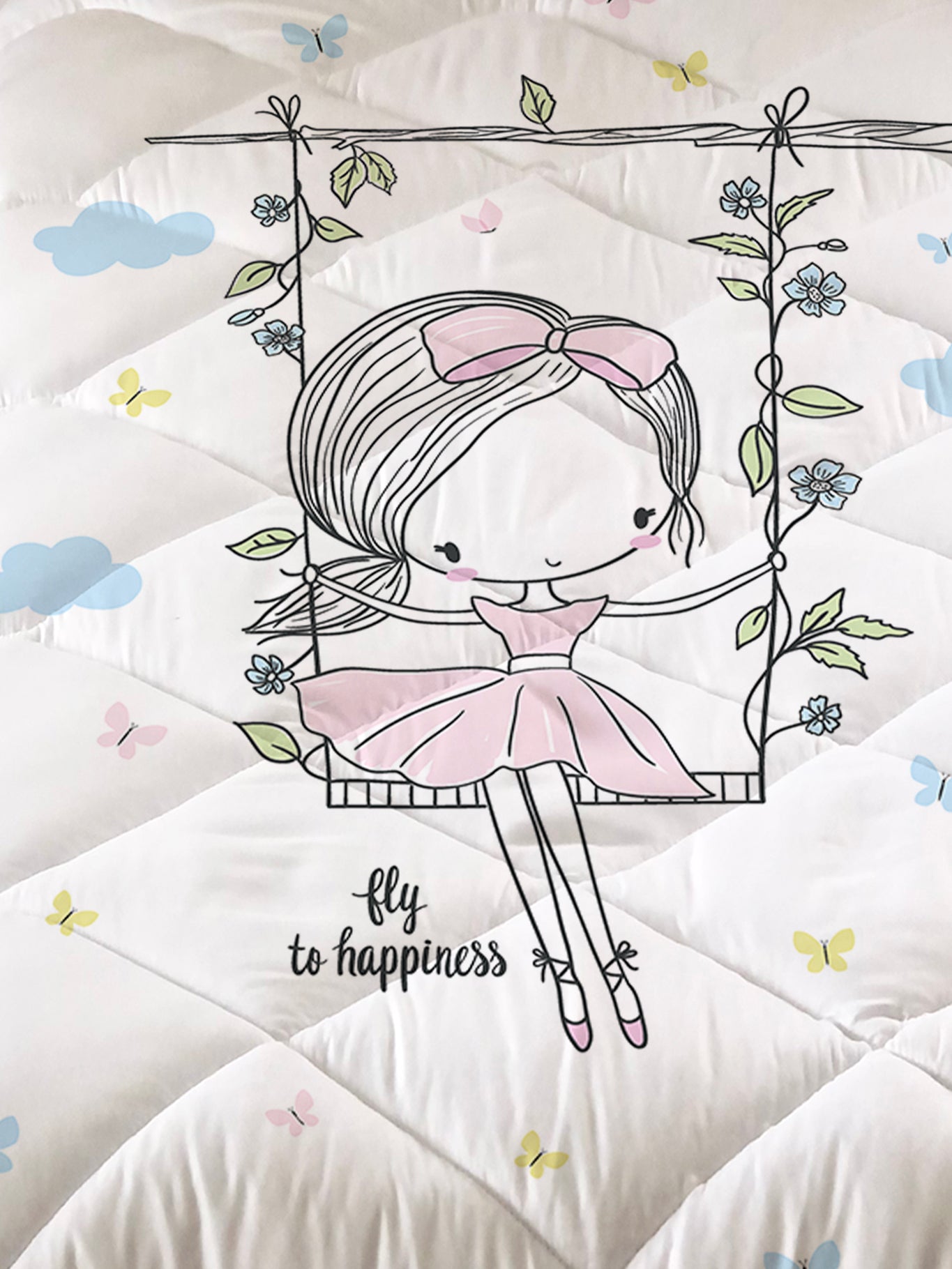 Milbay Pembe Peri Çocuk Desenli Kapitone Yorgan