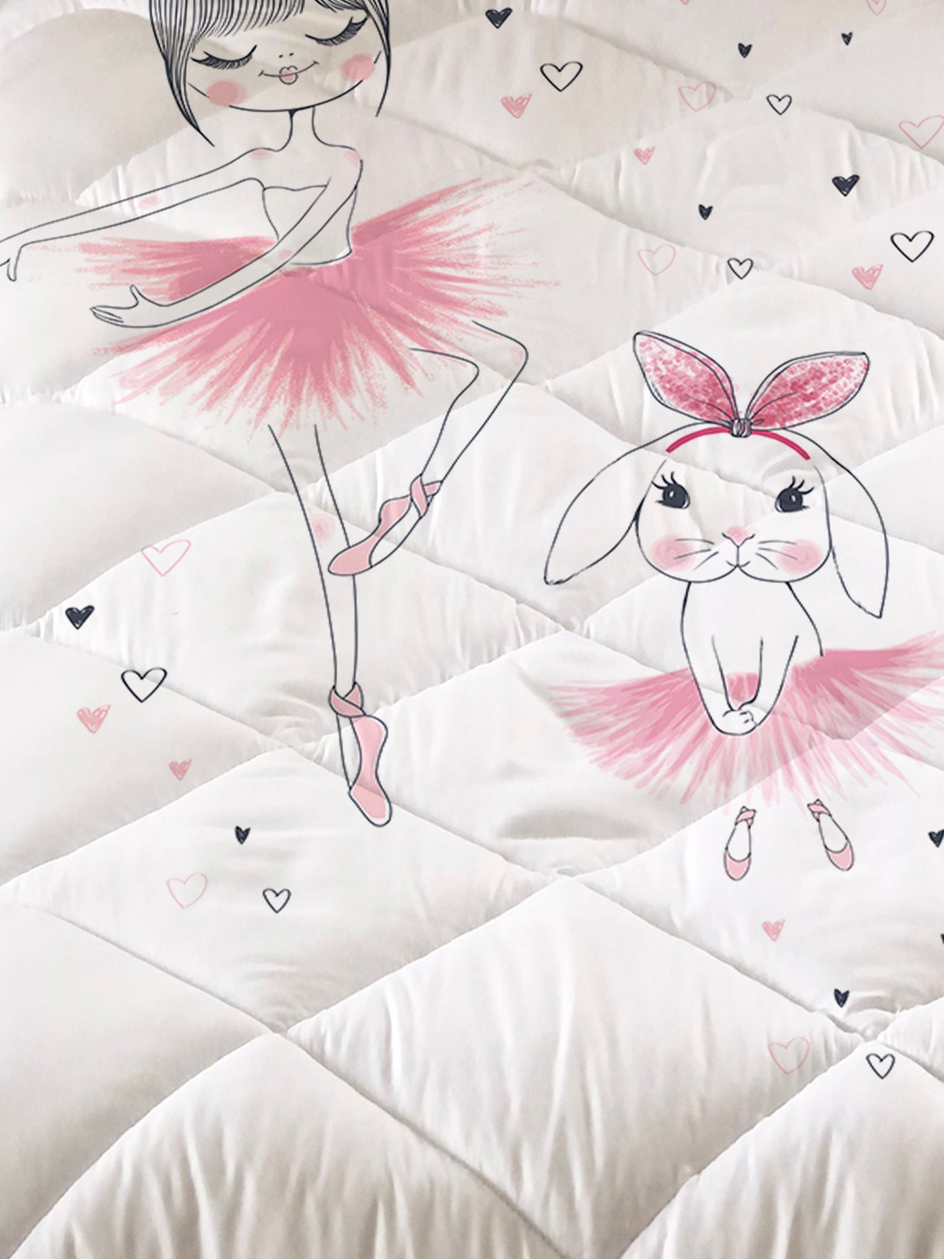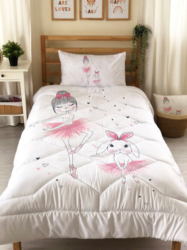 Milbay Pembe Balerin Tavşan Desenli Kapitone Yorgan