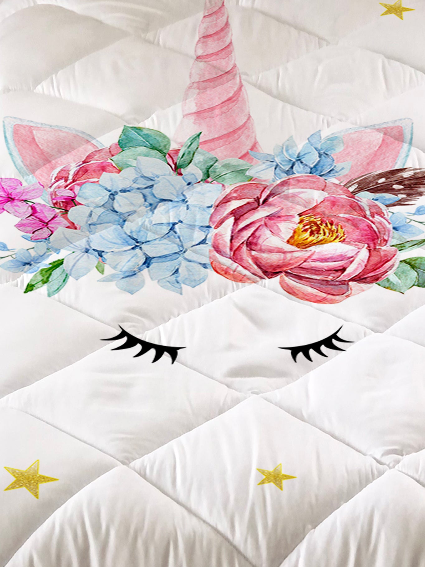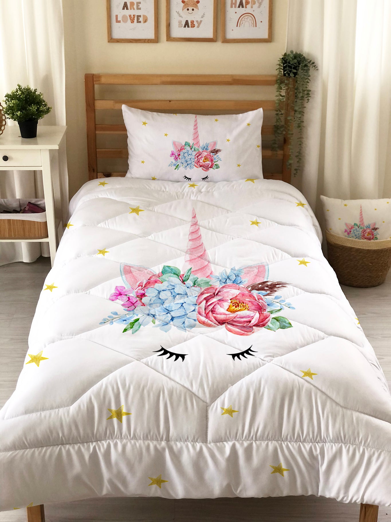 Milbay Unicorn Çiçekli Desenli Kapitone Yorgan