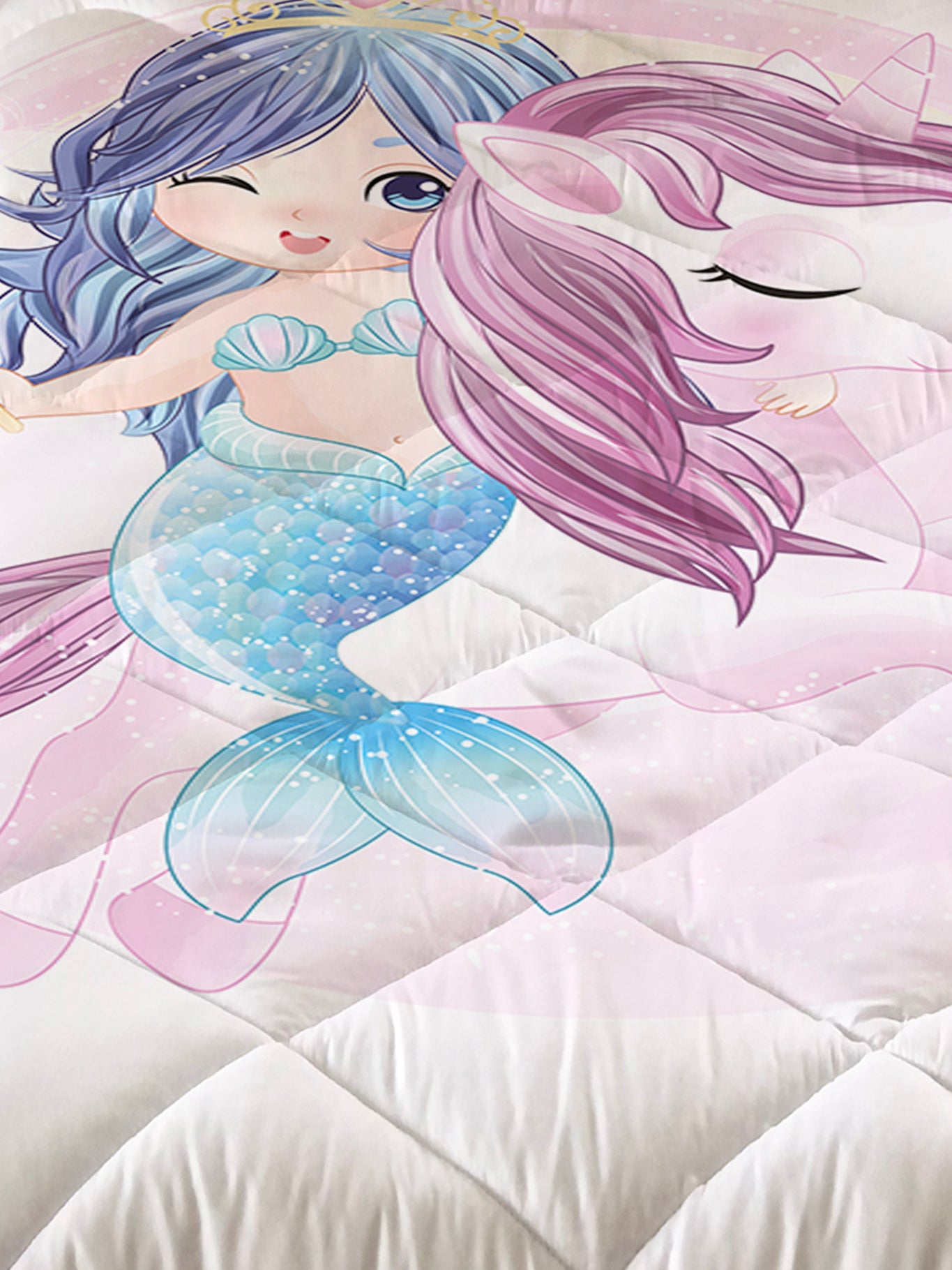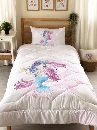 Milbay Deniz Kızı ve Unicorn Desenli Kapitone Yorgan