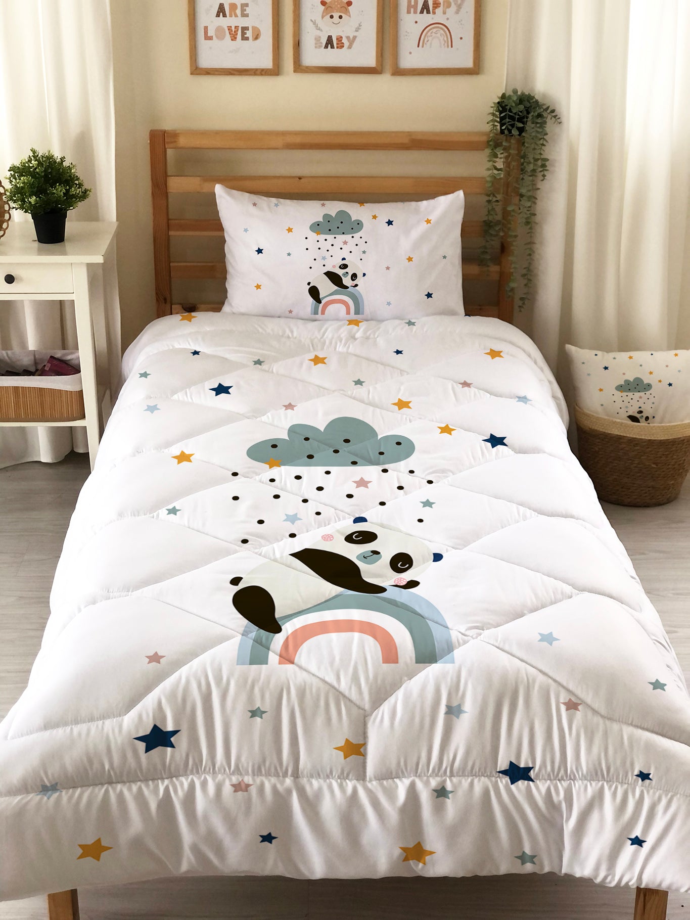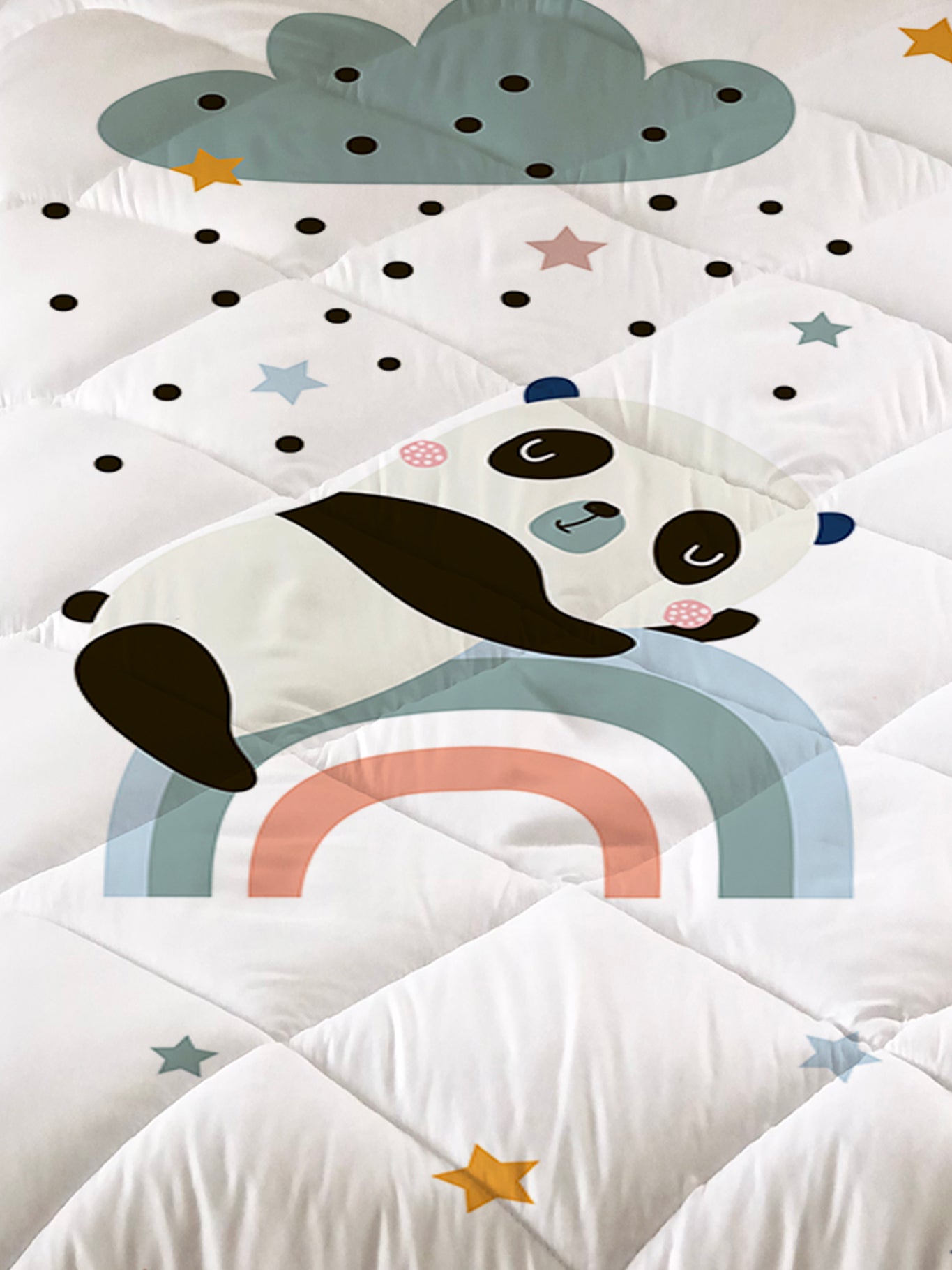 Milbay Panda ve Gökkuşağı Desenli Kapitone Yorgan