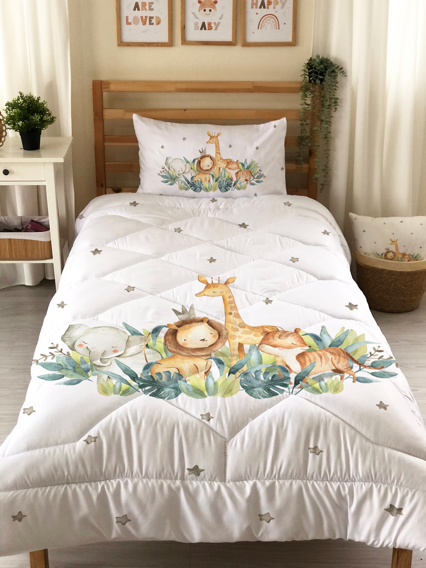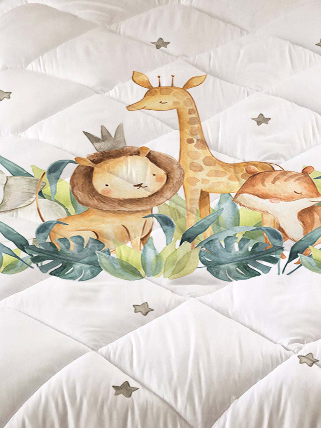 Yüksek kalitede dijital baskı teknolojisi ile hazırlanan safari desenli yorgan, odanızda adeta bir macera havası yaratıyor. 🐅🌴 Bu ürün, çocuk kapitone yorgan arayanlar için mükemmel bir seçim. Kapitone dikiş tekniği ile üretilen yorgan, tüm mevsimler boyunca çocukların beden sıcaklığını muhafaza etme özelliği ile dikkat çekiyor. 🌤️❄️