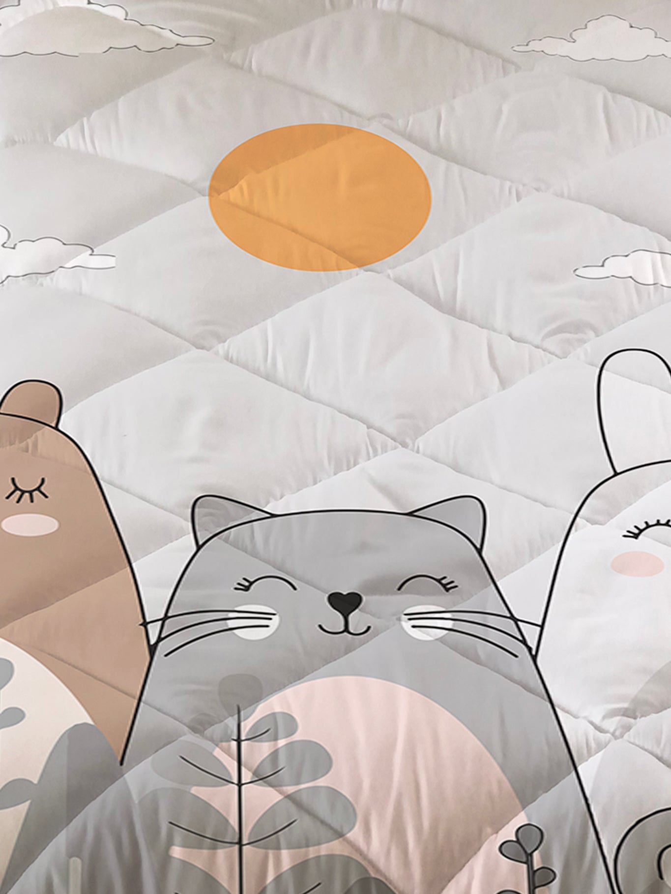 Milbay Sevimli Hayvanlar Desenli Kapitone Yorgan