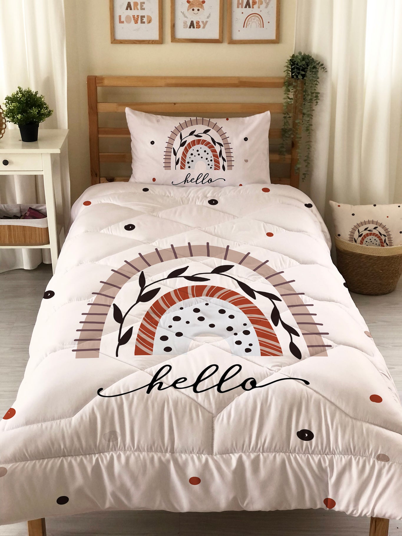 🎈Çocuklarınızın odası için mükemmel bir seçenek olacak ''Milbay Renkli Gökkuşağı Desenli Kapitone Yorgan'', ruhlarına, odalarına ve hayallerine renk katacak. 🌈 Gökkuşağı desenli bu yorgan, çocuk odası dekorasyonuna canlılık ve enerji katarken, kaliteli kumaşıyla da çocuklarınızın rahat ve huzurlu bir uykuya dalmasını sağlayacak. ✨