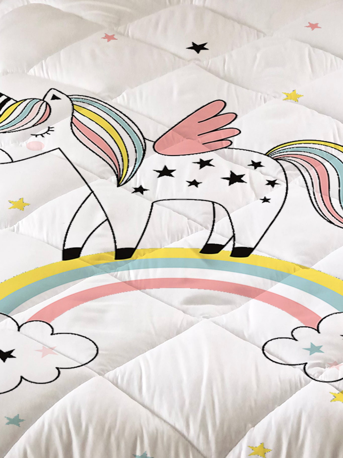 Milbay Unicorn Gökkuşağı Desenli Kapitone Yorgan