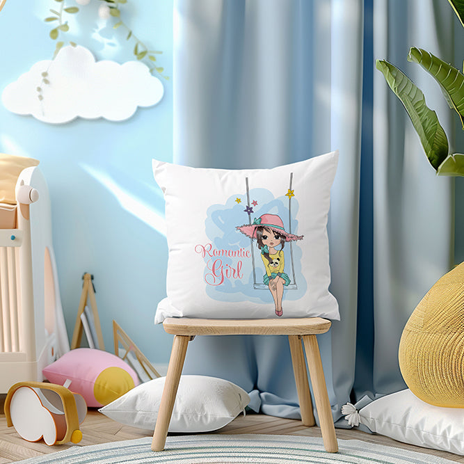 Milbay Romantik Kız Desenli Kırlent Kılıfı