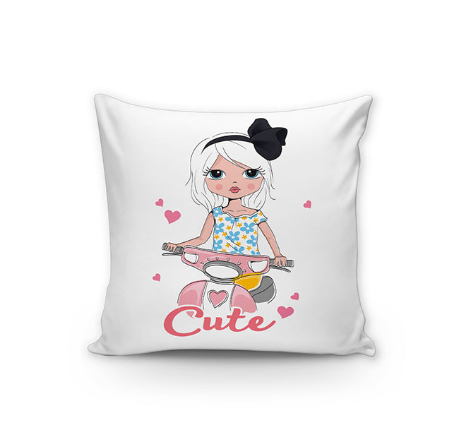 Milbay Şirin Kız Scooter Desenli Kırlent Kılıfı