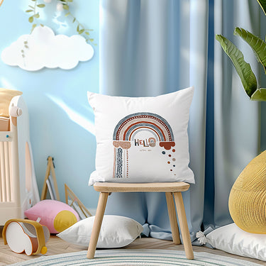 Milbay Gökkuşağı Hello Desenli Kırlent Kılıfı