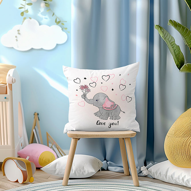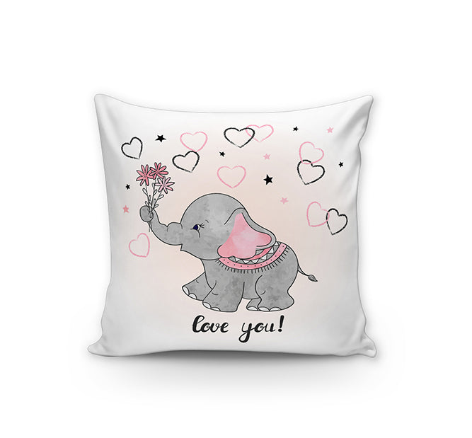 Milbay Sevimli Fil Aşk Desenli Kırlent Kılıfı