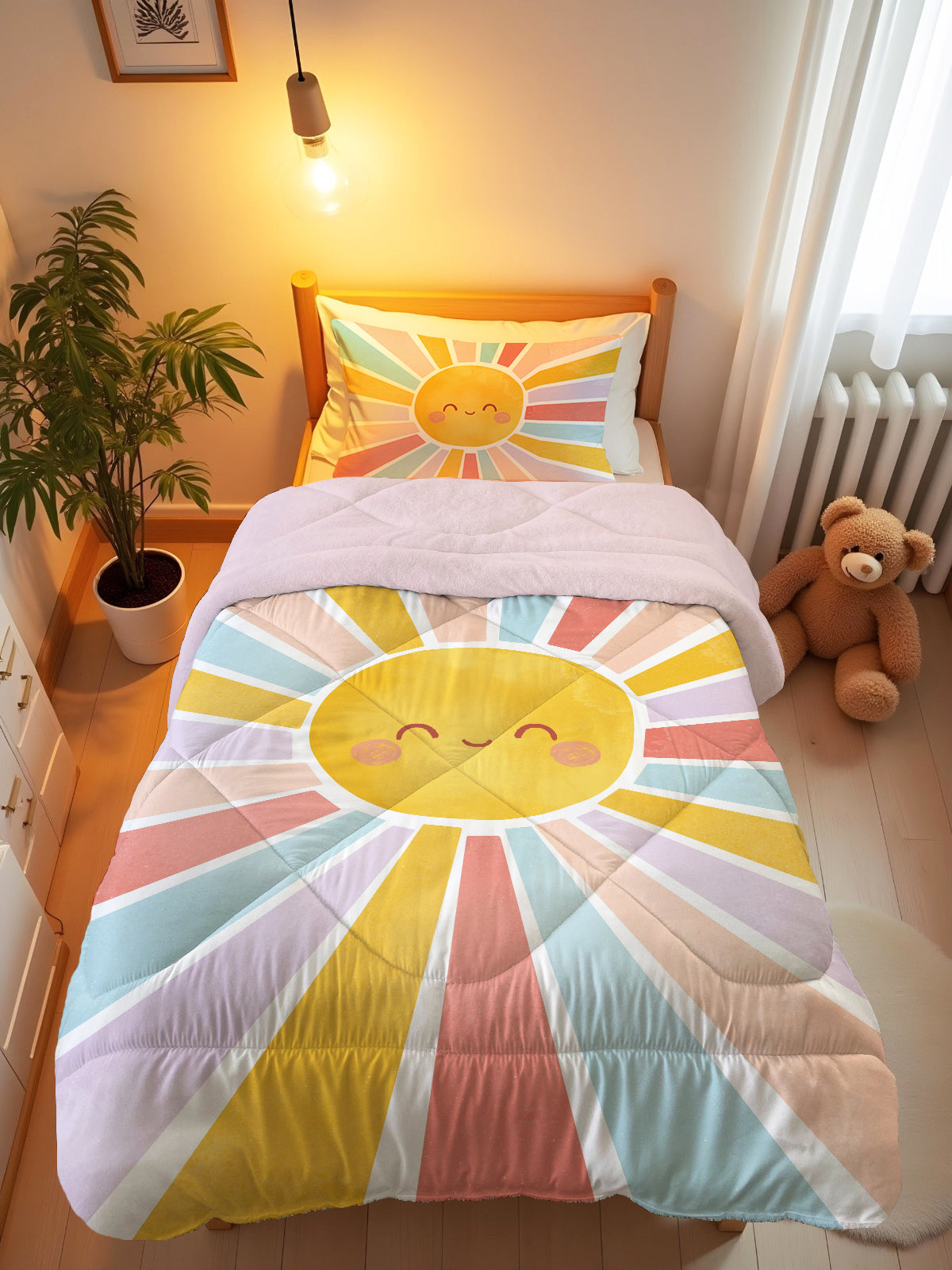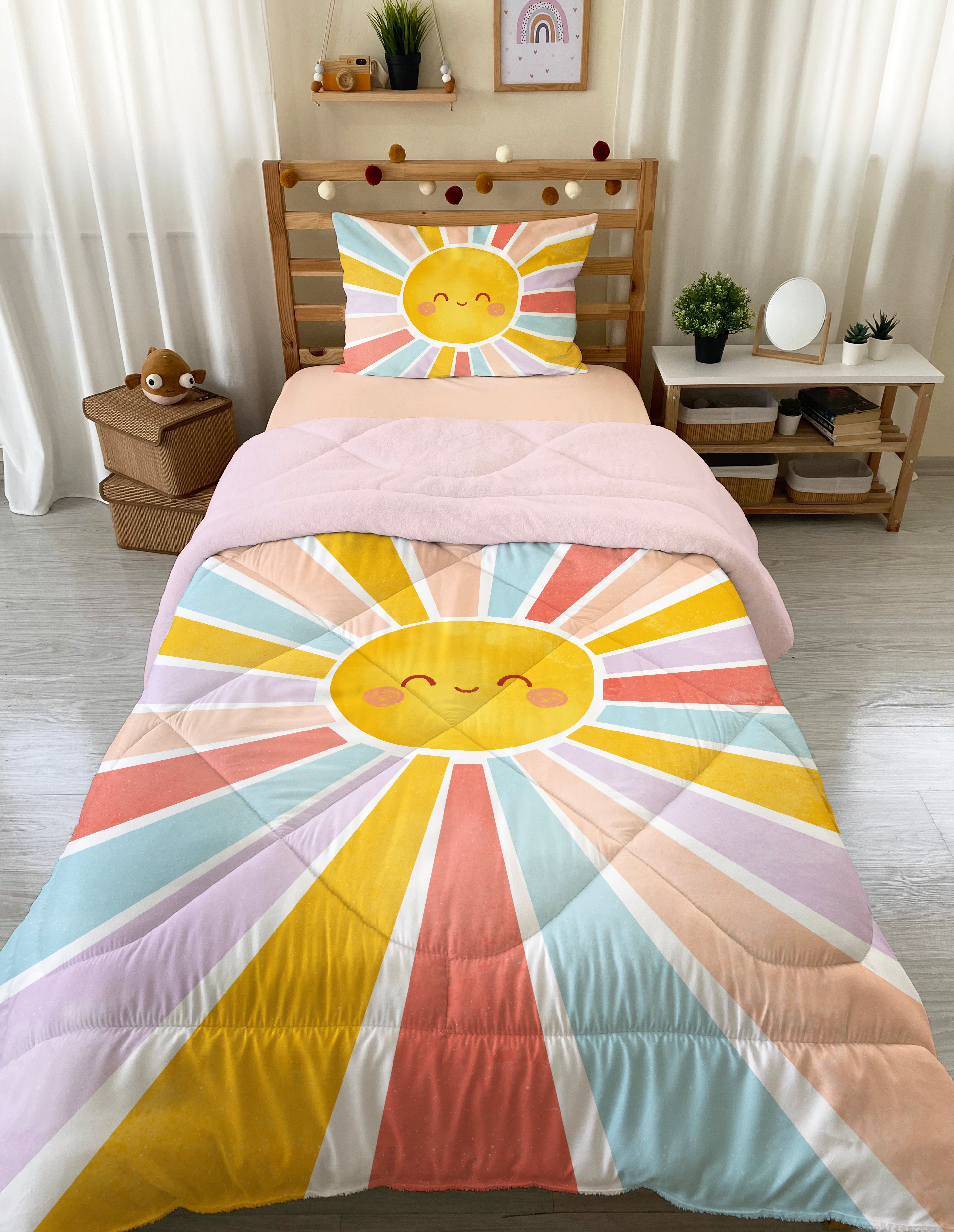 *Milbay Güneş Desenli Peluş Yorgan*, çocuklarınızın uykularını tatlılaştıracak ideal bir seçimdir. Bu çocuk peluş yorgan, çocuk odası aksesuarları arasında en sevilenlerden biri misali, elimizi sımsıcak tutan peluşuyla, rüya alemine tatlı bir yolculuk yapmaktadır.