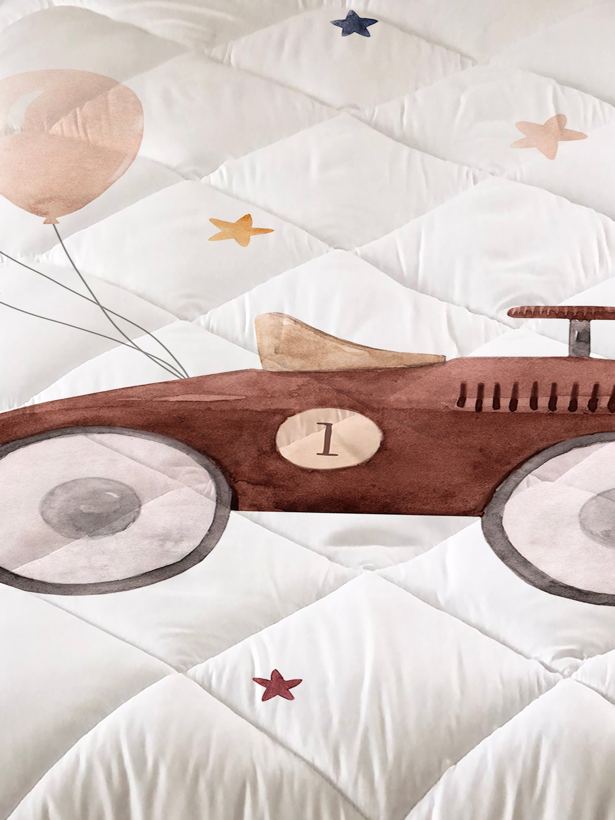 Milbay Renkli Araba ve Balonlu Desenli Peluş Yorgan