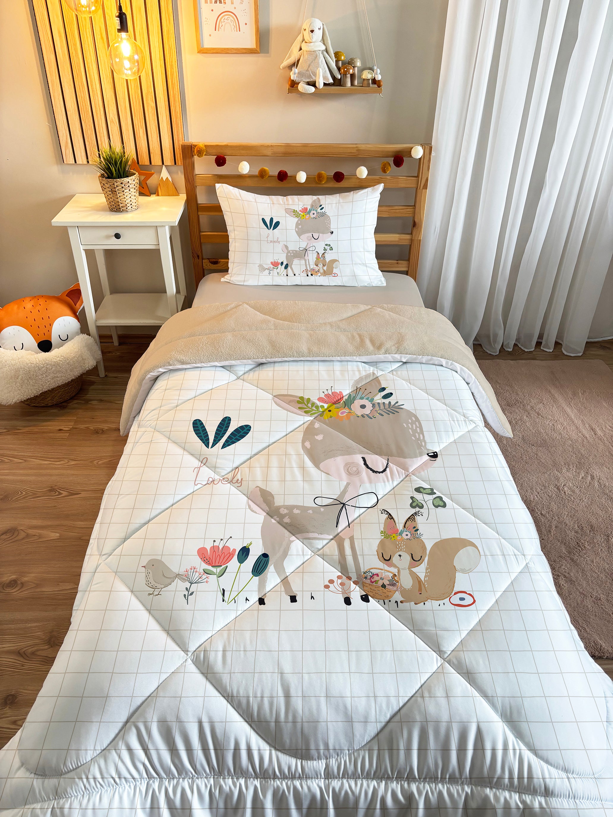 🍁🌺 Çocuk odası tekstili konusunda aradığınız her şey Milbay Orman Hayvanları Desenli Peluş Yorgan'da!🦉🌼