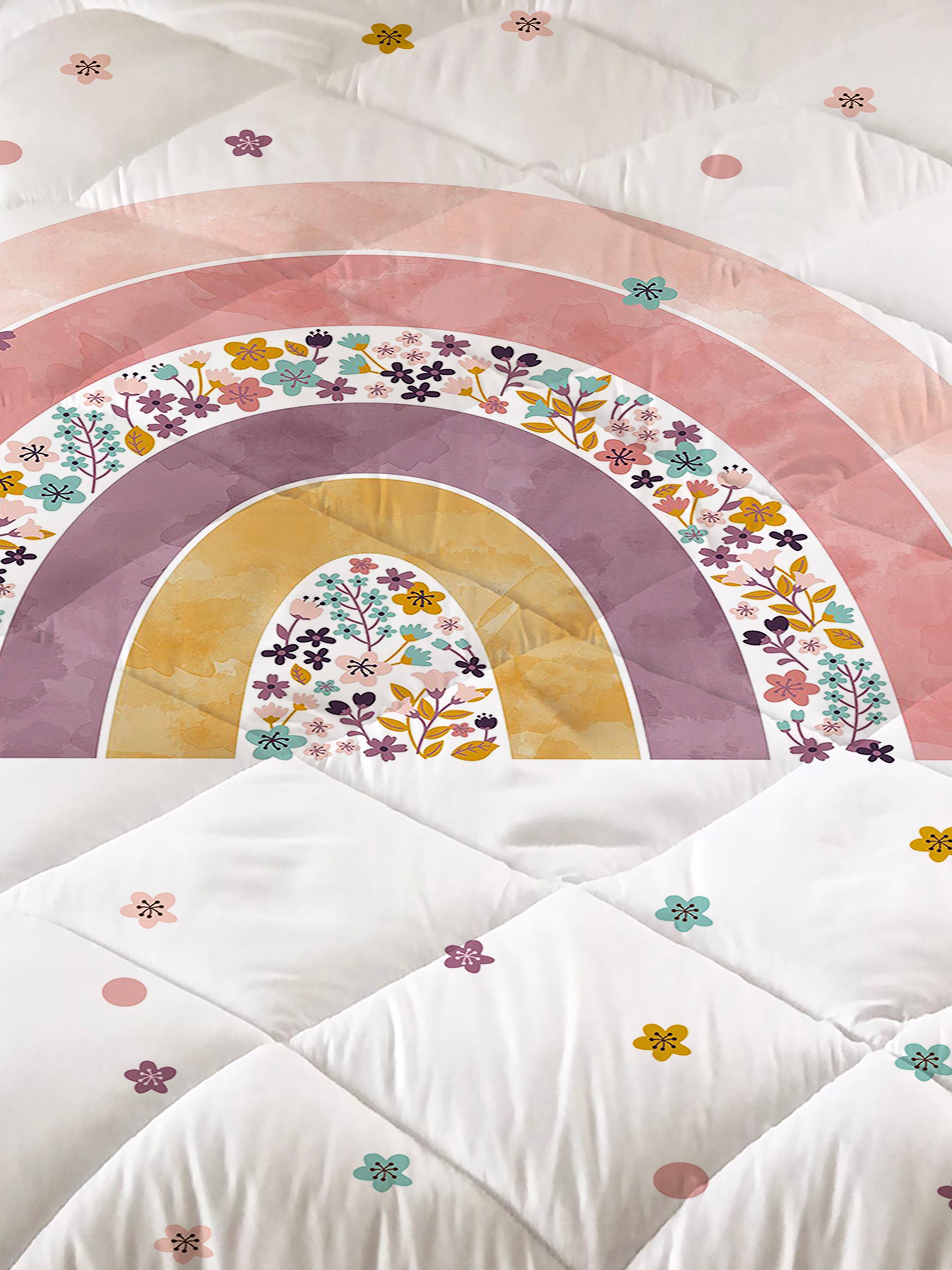 🌈 Milbay Gökkuşağı Çiçekli Desenli Peluş Yorgan, çocuk odasına neşeli ve canlı bir hava katıyor! Bu şirin peluş yorgan, dijital baskı kapitone deseni ve kaliteli kumaşı ile çocuklarınızın rüya dünyasını renklendirecek. 🛏️ Tek kişilik ve çiçekli bu yorgan, çocuk odası dekorasyonu için ideal bir seçimdir. 🌸