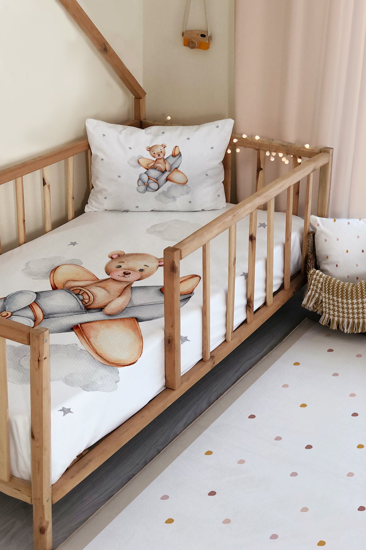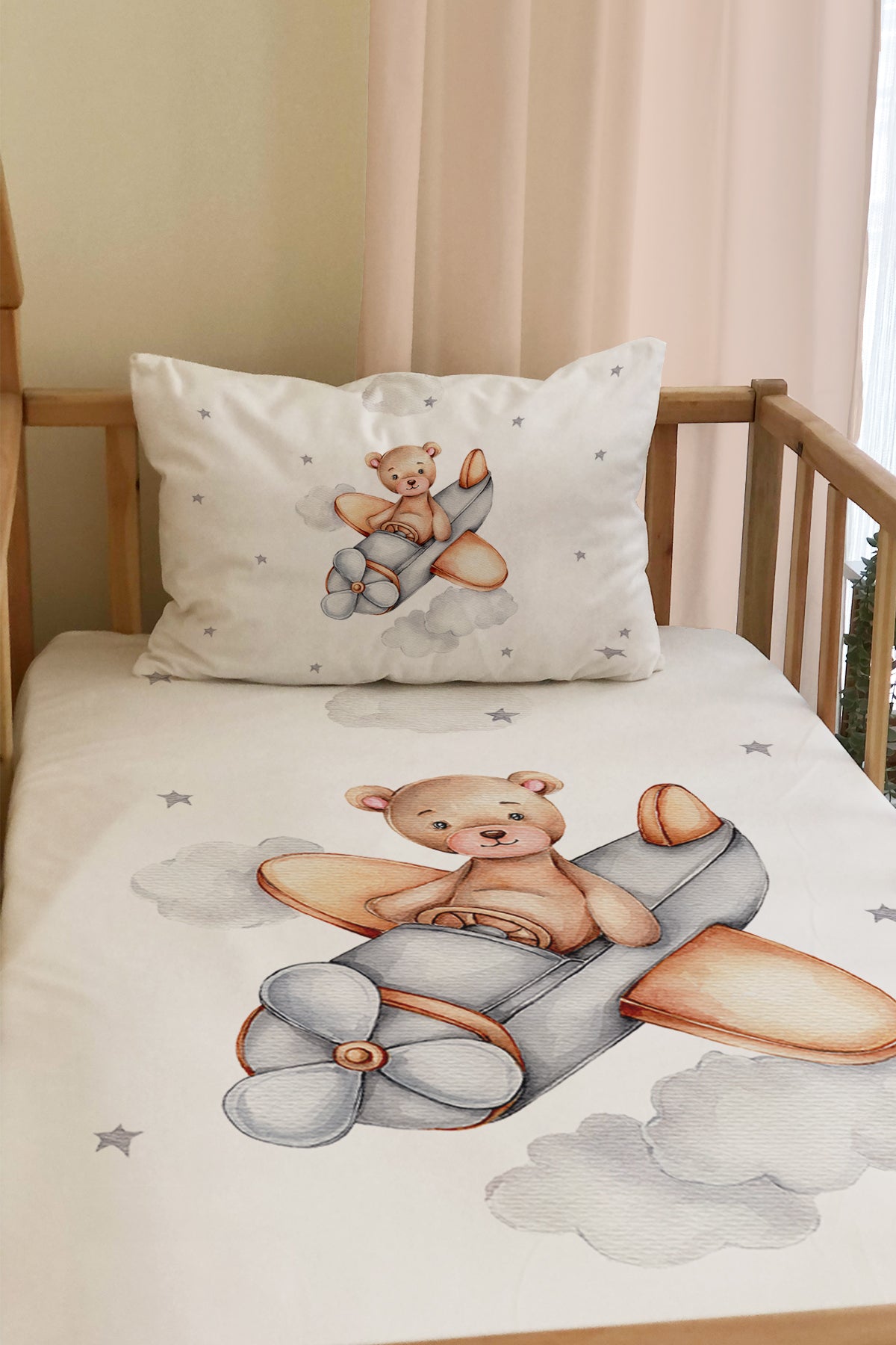 Milbay Ayıcık Uçak Desenli Dekoratif Örtü