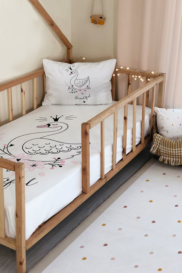 Dijital baskı teknolojisiyle üretilen bu kuğu desenli örtü, çocuklarınızın hayallerini süsleyecek.🦢 Milbay Prenses örtüsü hem kullanışlı hem de dekoratif bir tasarıma sahiptir. Çok yönlü kullanımı ile çocuk odası tekstili kategorisindeki en popüler ürünlerimizden biri. 💟
