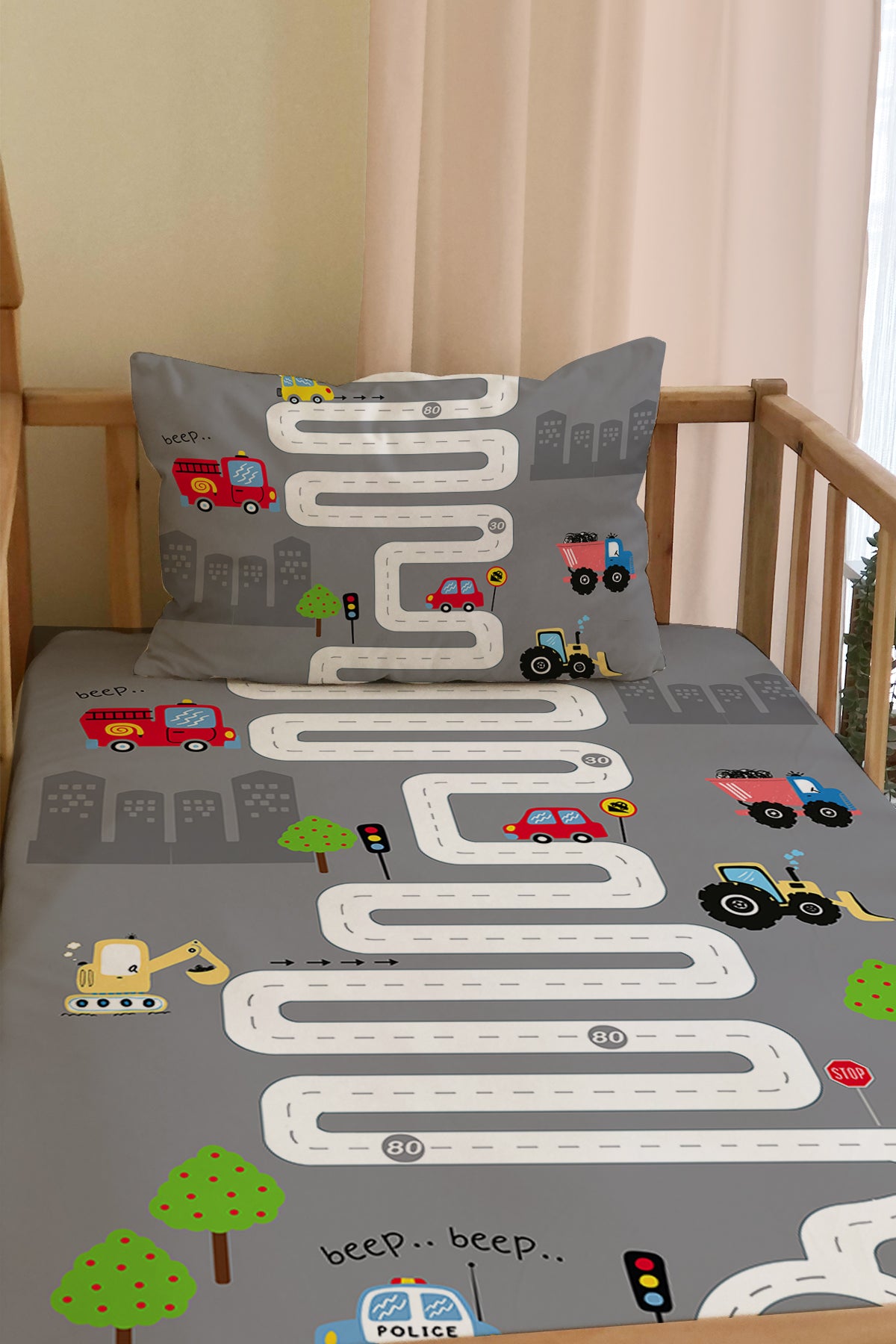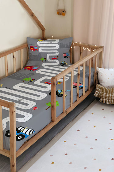 Milbay Renkli Araçlar Yolu Desenli Dekoratif Örtü
