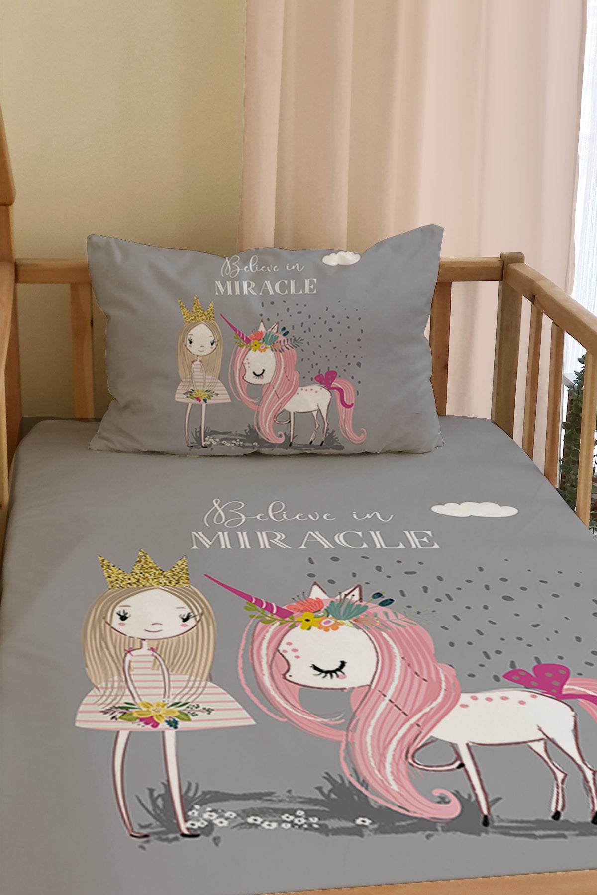 Milbay Unicorn ve Prenses Desenli Dekoratif Örtü