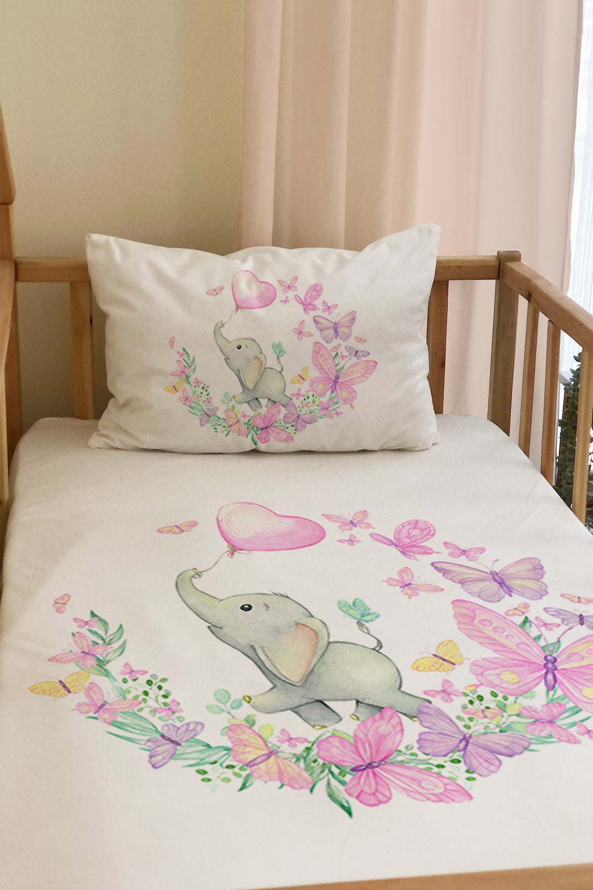 Milbay Sevimli Fil ve Kelebekler Desenli Dekoratif Örtü
