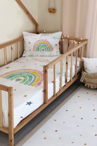 Çocuklarınızın odasını renklendirmek ve keyifli bir atmosfer oluşturmak için Milbay Renkli Gökkuşağı Desenli Dekoratif Örtü'yü tercih edin. 🌈🎈🚀